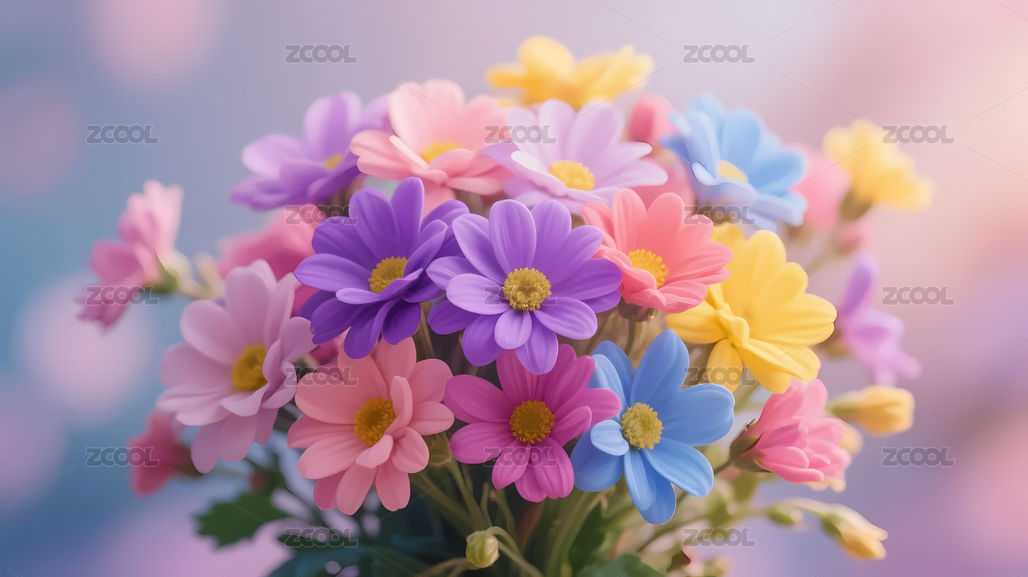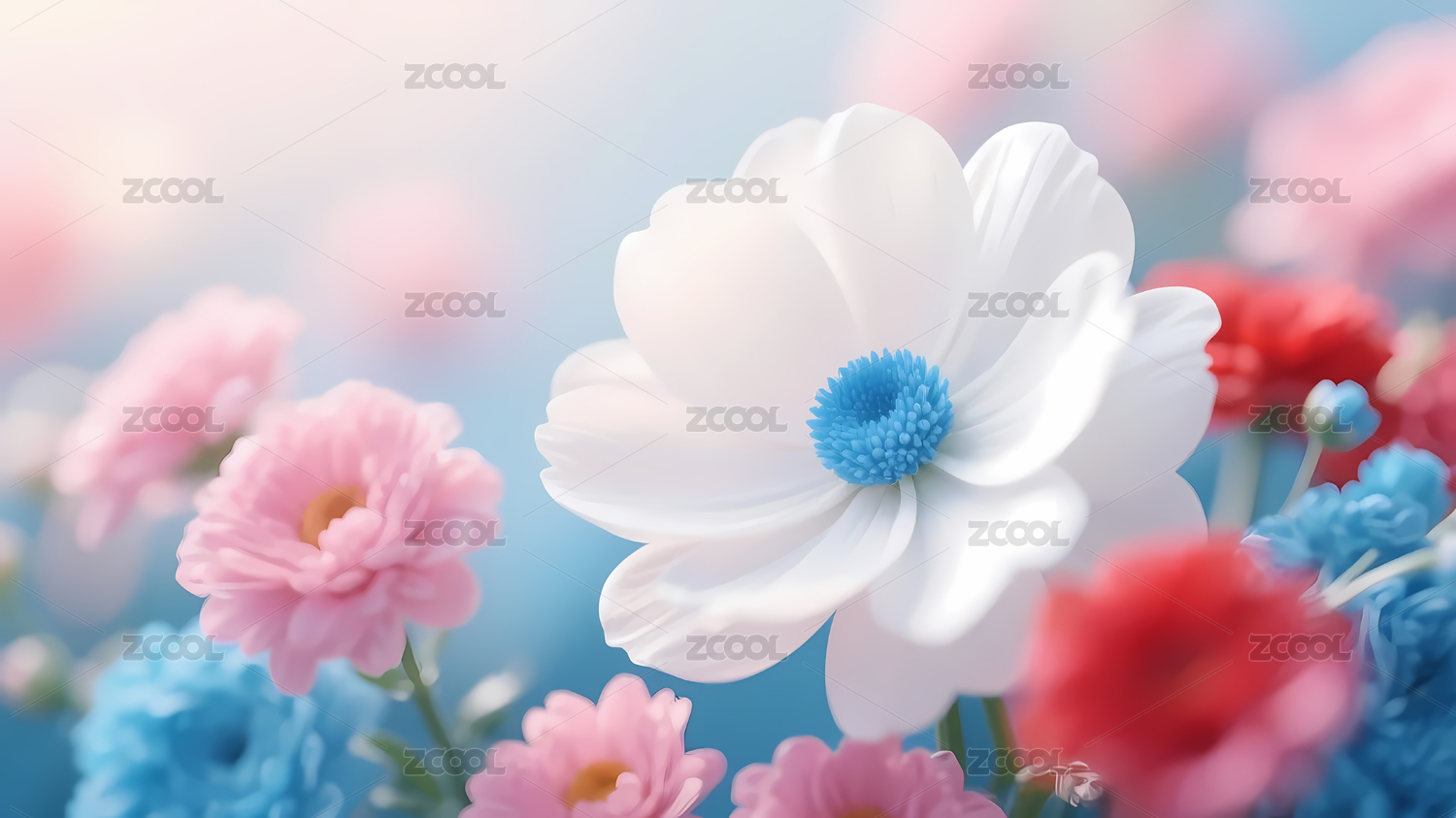 背景,粉色,蓝色,白色,鲜艳,红色,花朵,花蕊,盛开