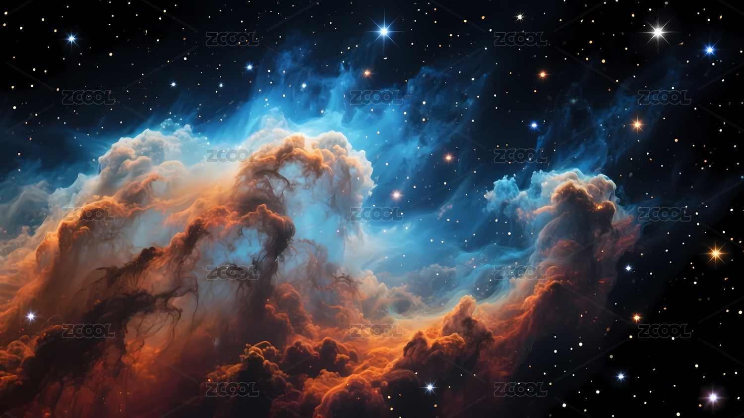 橙蓝星云与宇宙星空