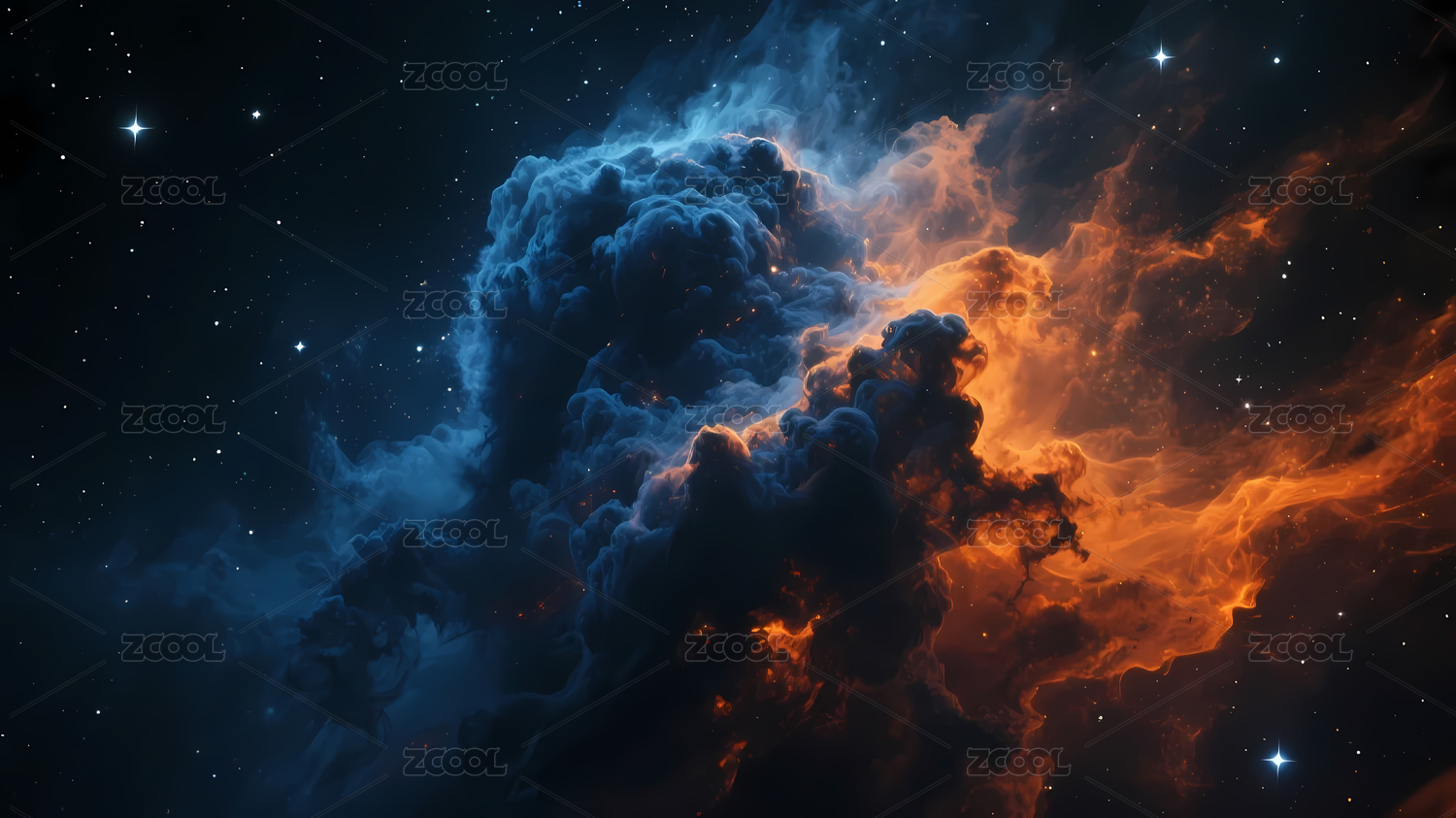 橙蓝交织星云宇宙景象