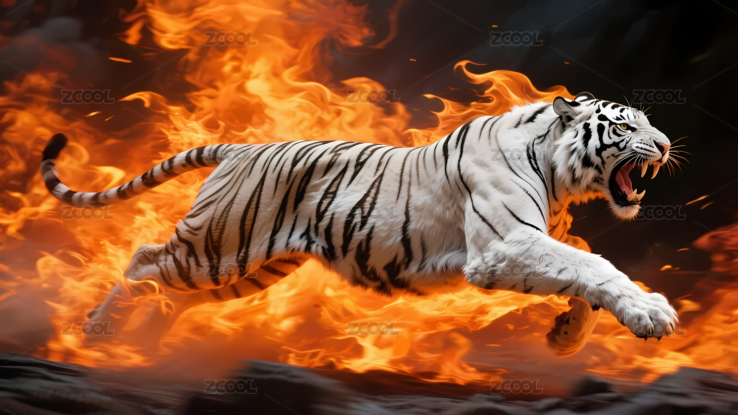 背景,橙色,老虎,怒吼,紫色,火焰,烟雾,黑色,条纹,动物
