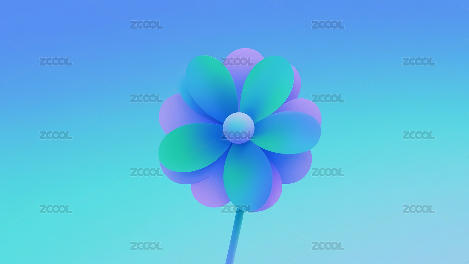 白绿花瓣图案蓝绿背景
