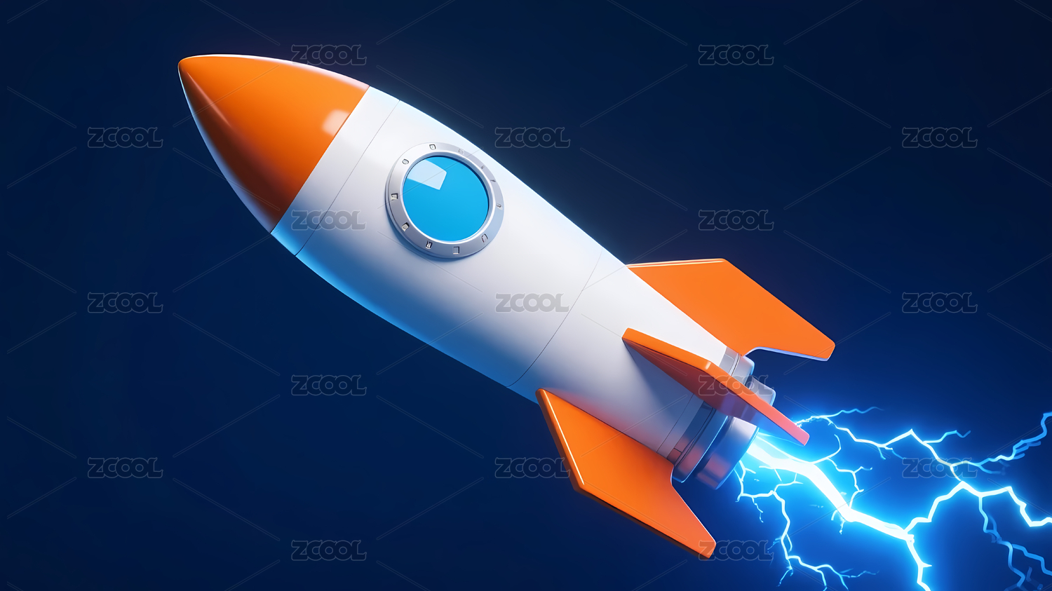 红白火箭深蓝背景闪电