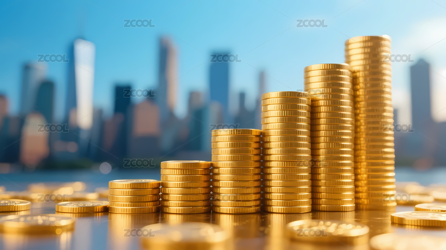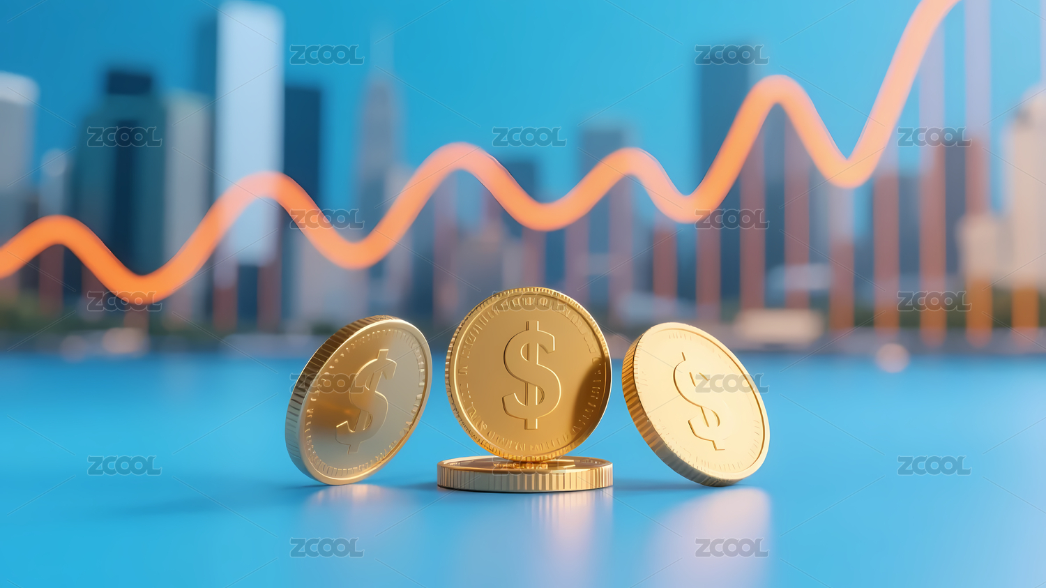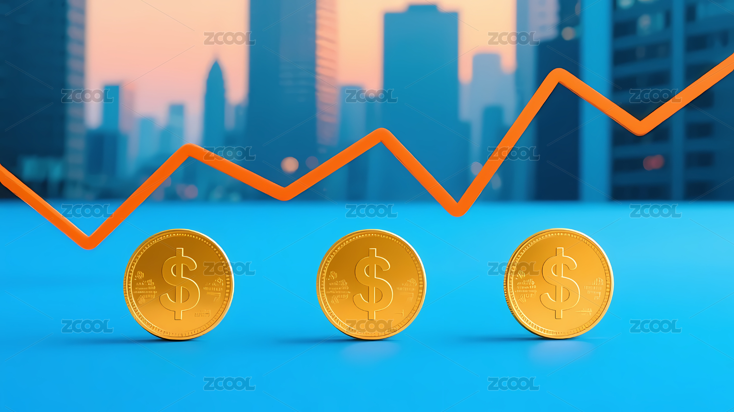 蓝色,背景,橙色,曲线,金色,硬币,美元,城市,天际线,符号