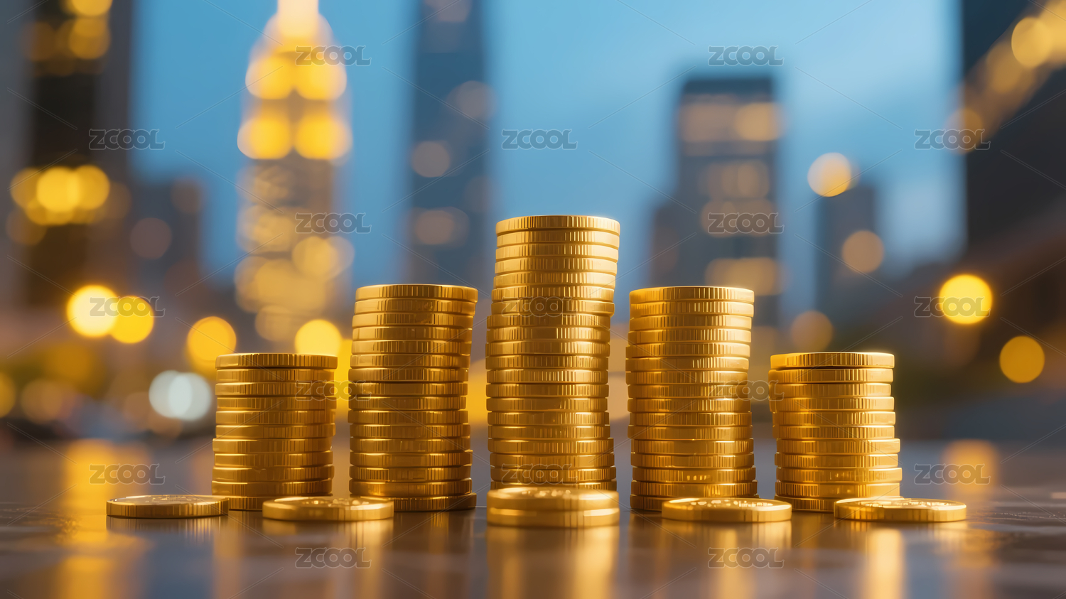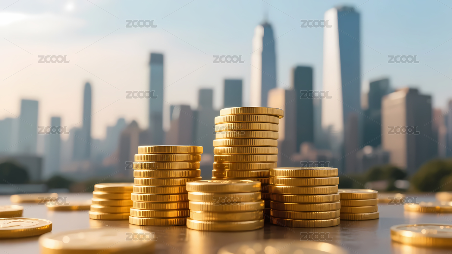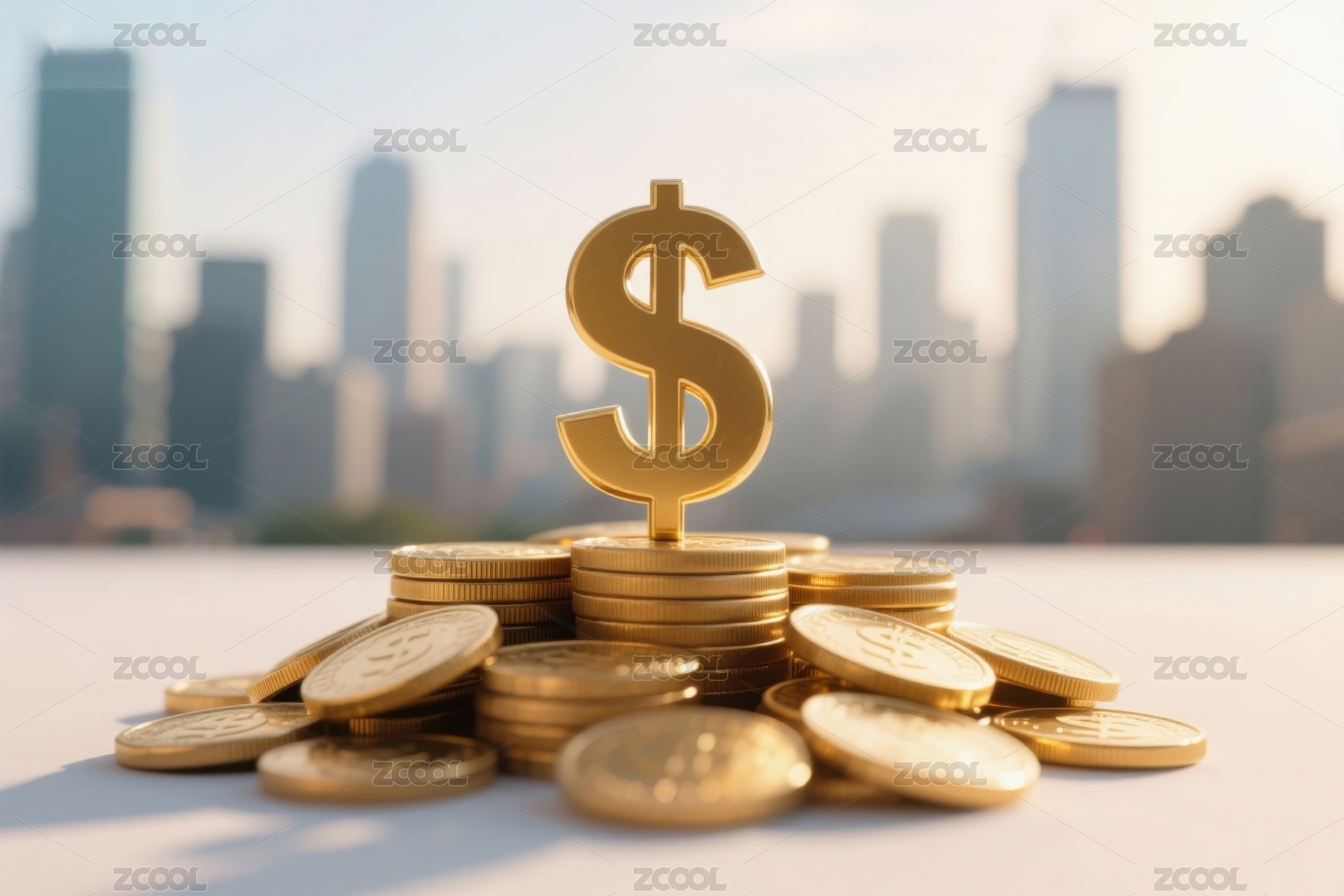 蓝色,背景,橙色,曲线,金色,硬币,美元,城市,天际线,符号
