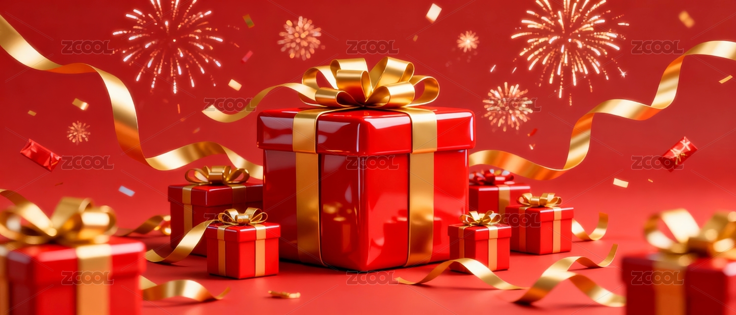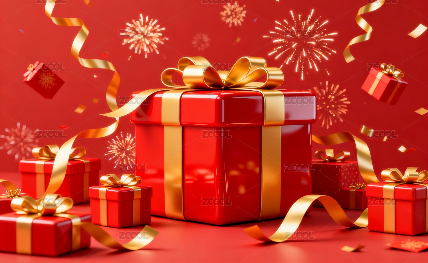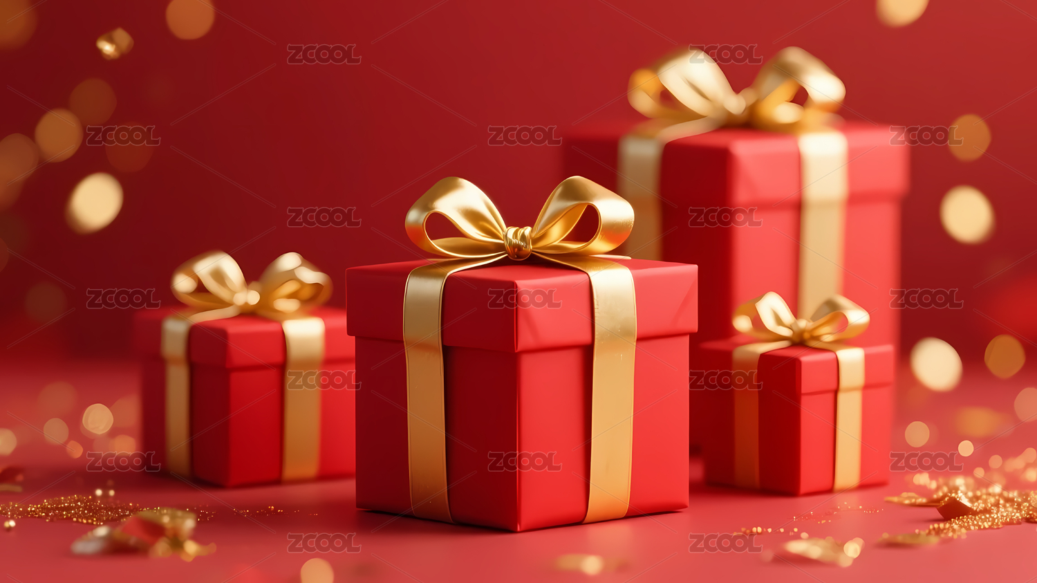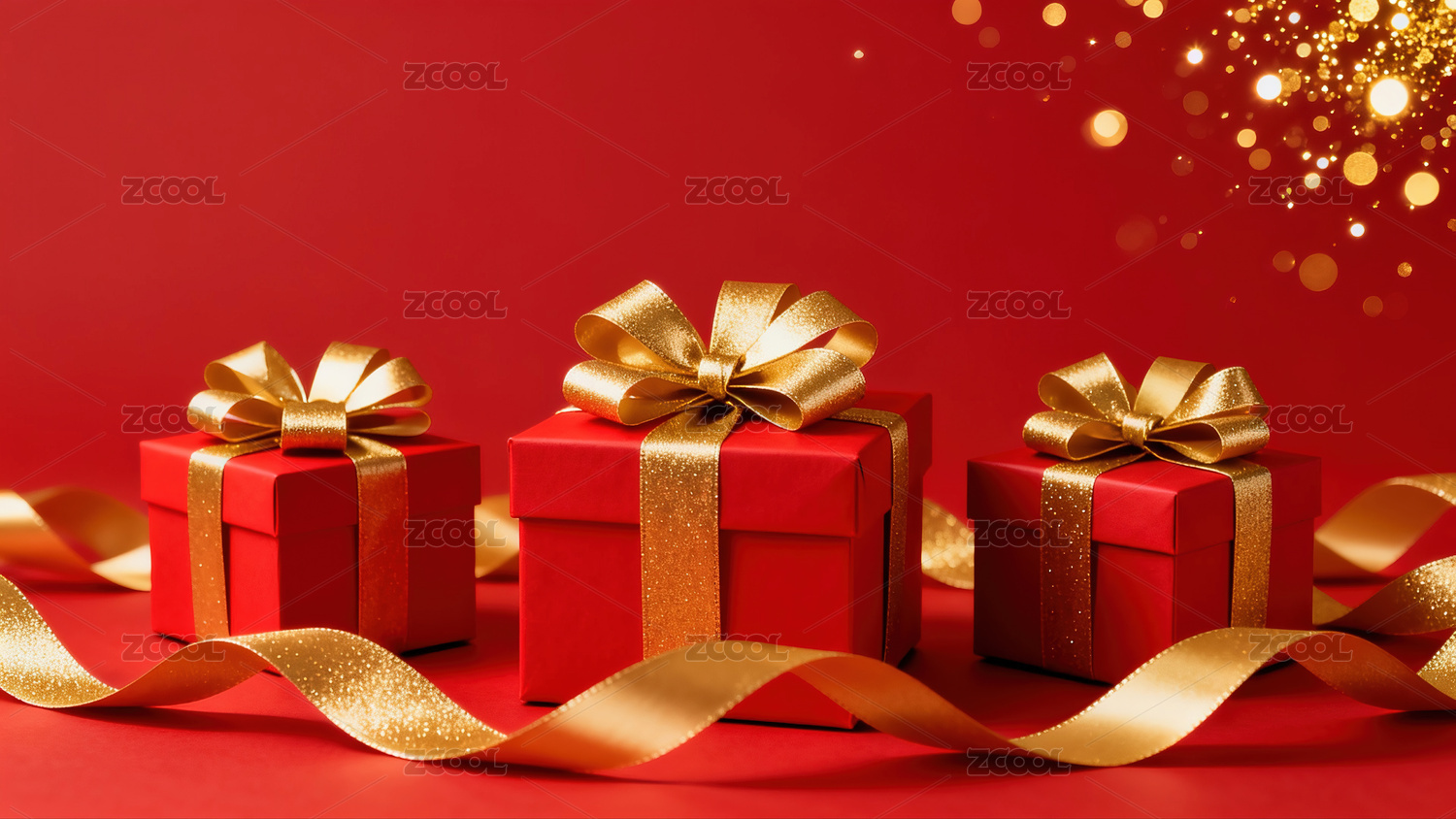 背景,红色,蝴蝶结,金色,节日,装饰,丝带,光斑,礼盒,飘动