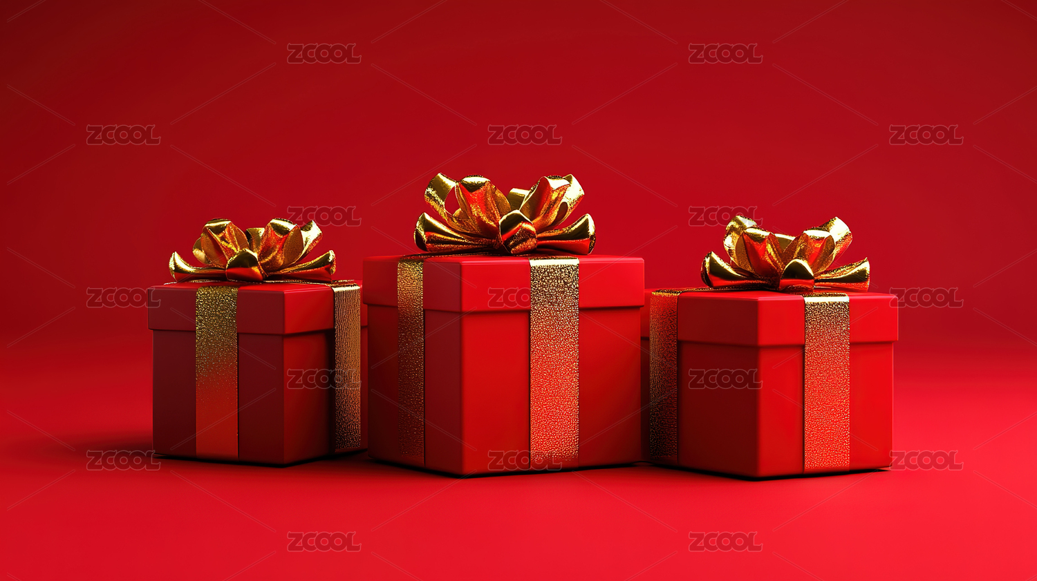 背景,红色,蝴蝶结,金色,节日,装饰,礼盒,摆放,整齐,条纹