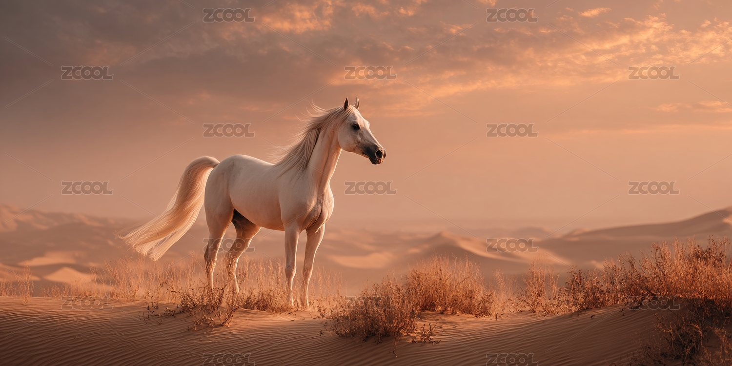 主视觉,商业,场景,背景,氛围,动物,奔跑,白色,白马,沙漠