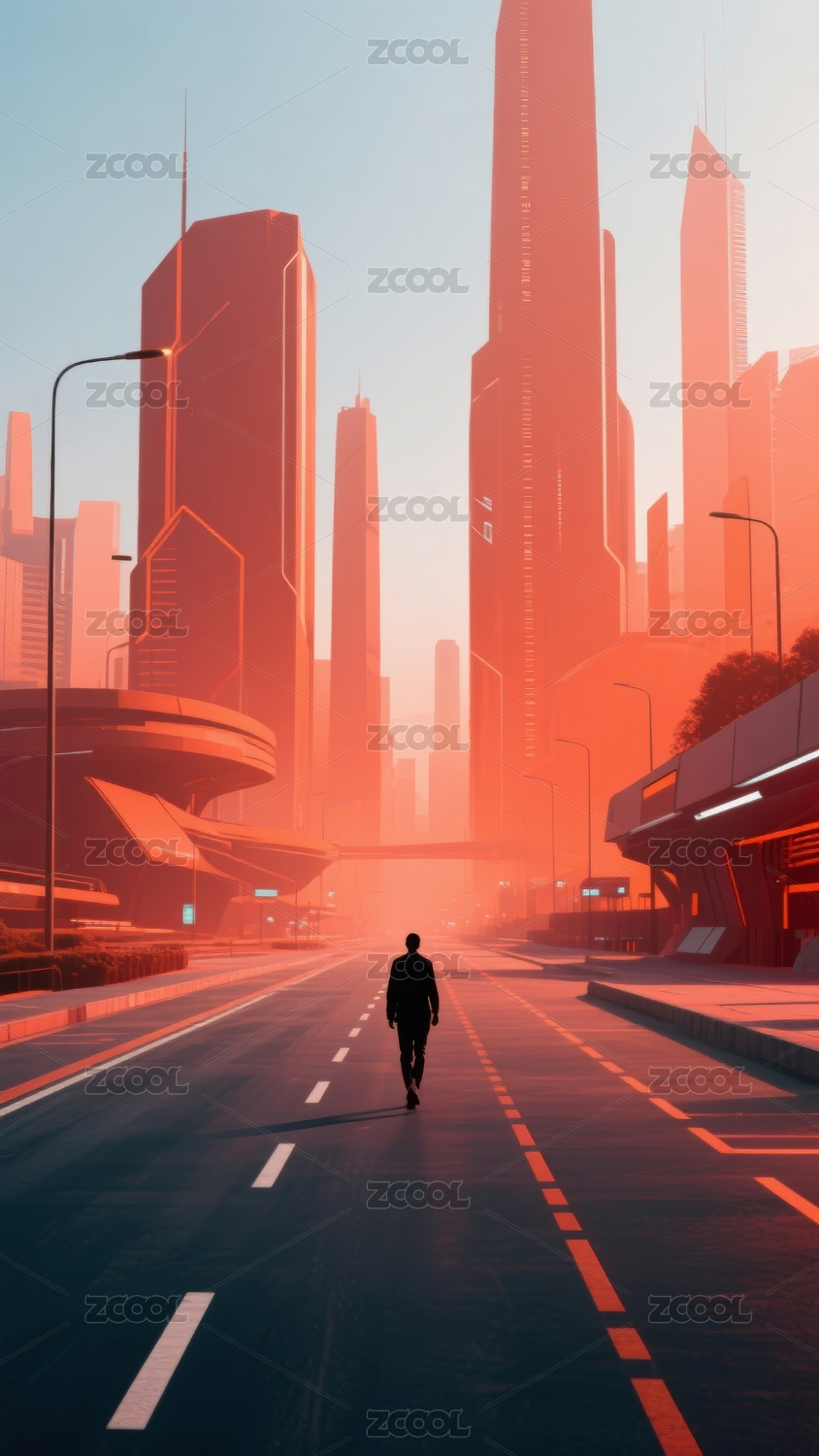插画, 艺术, 设计, 色彩, 场景, 街道, 建筑, 科技, 氛围, 孤独
