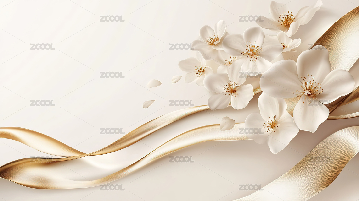 白色花朵围绕的米色背景