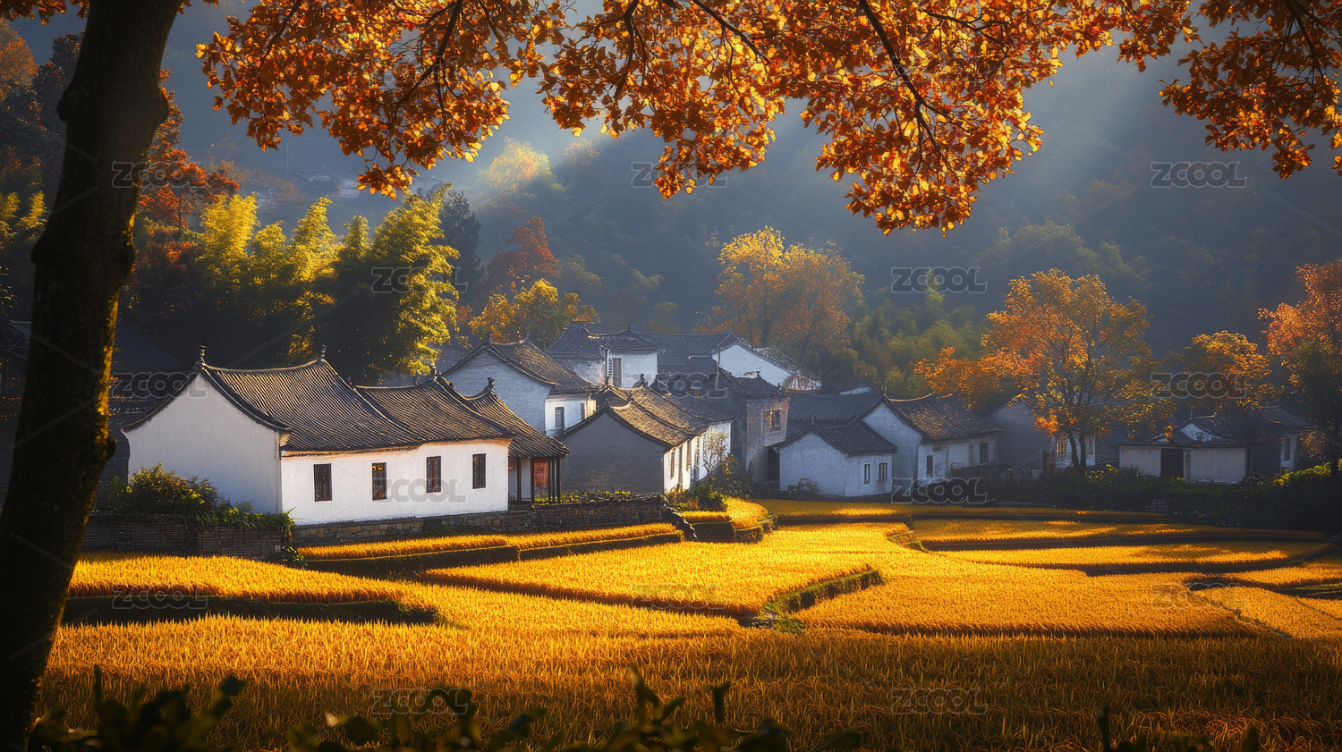 徽派古建筑与稻田