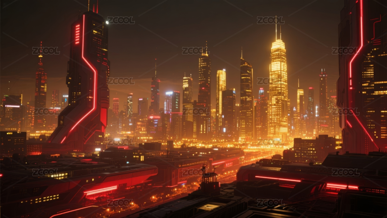 未来主义科技科幻赛博朋克城市摩天大楼