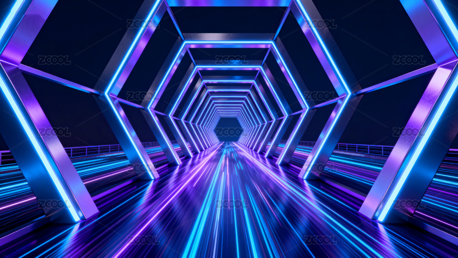 霓虹六边形科技隧道