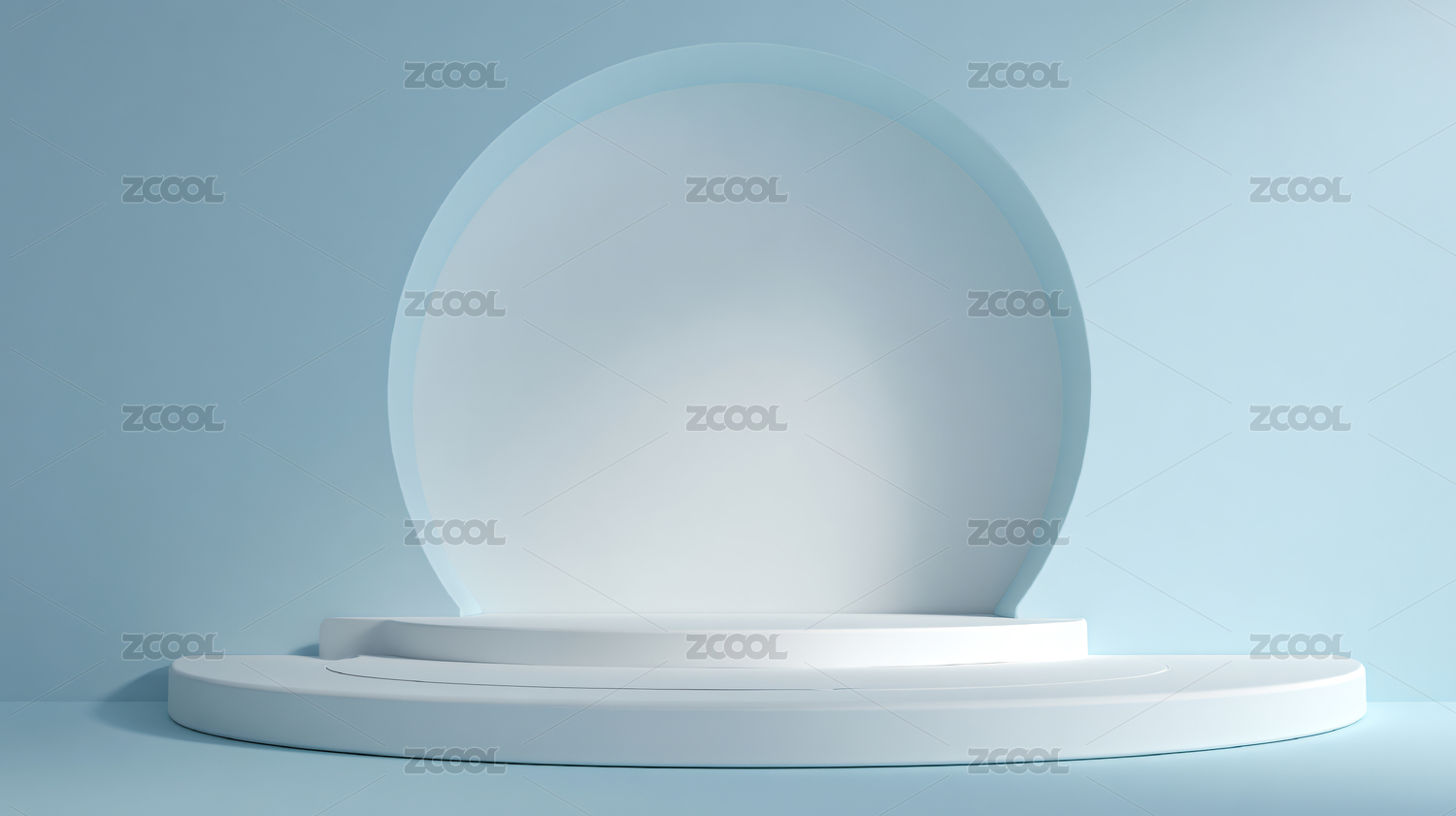 蓝色背景下的白色圆形展台