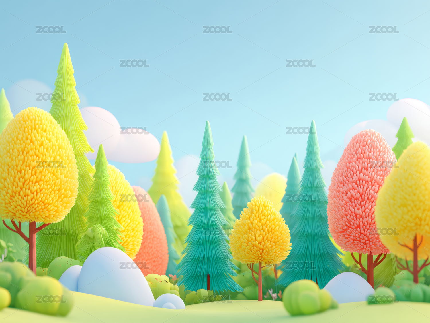 卡通森林与蓝天白云