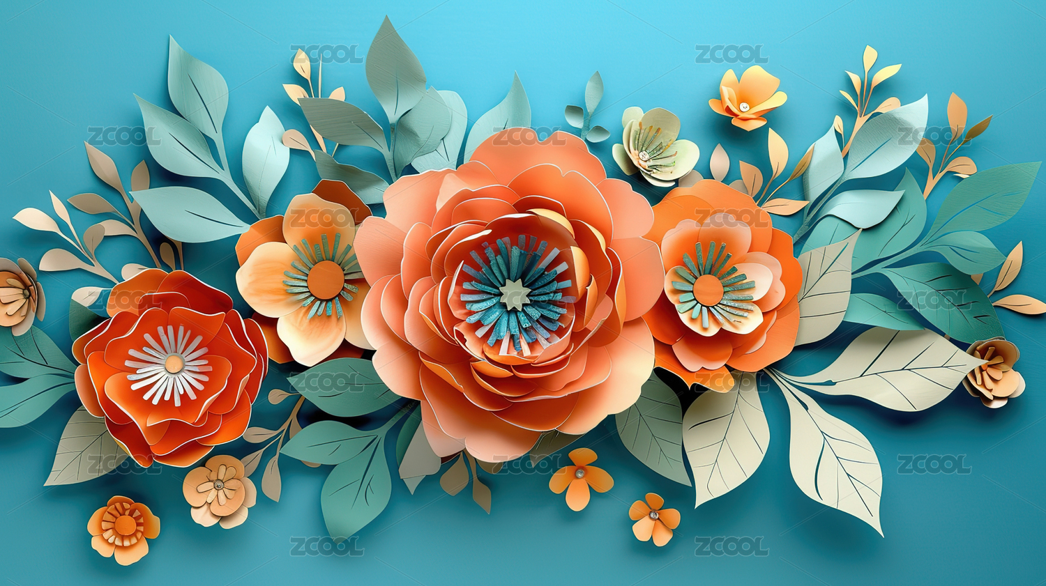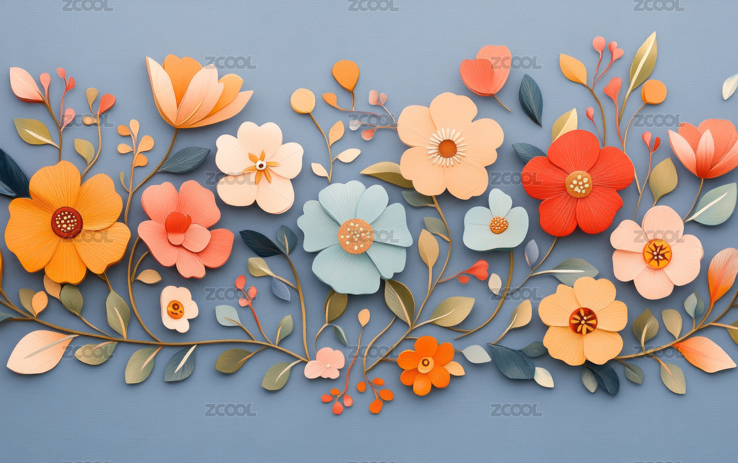 红底纸艺花卉图案