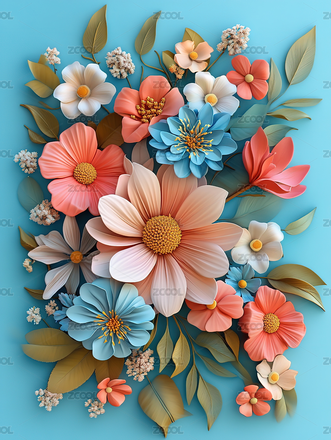 花朵和叶子立体插画