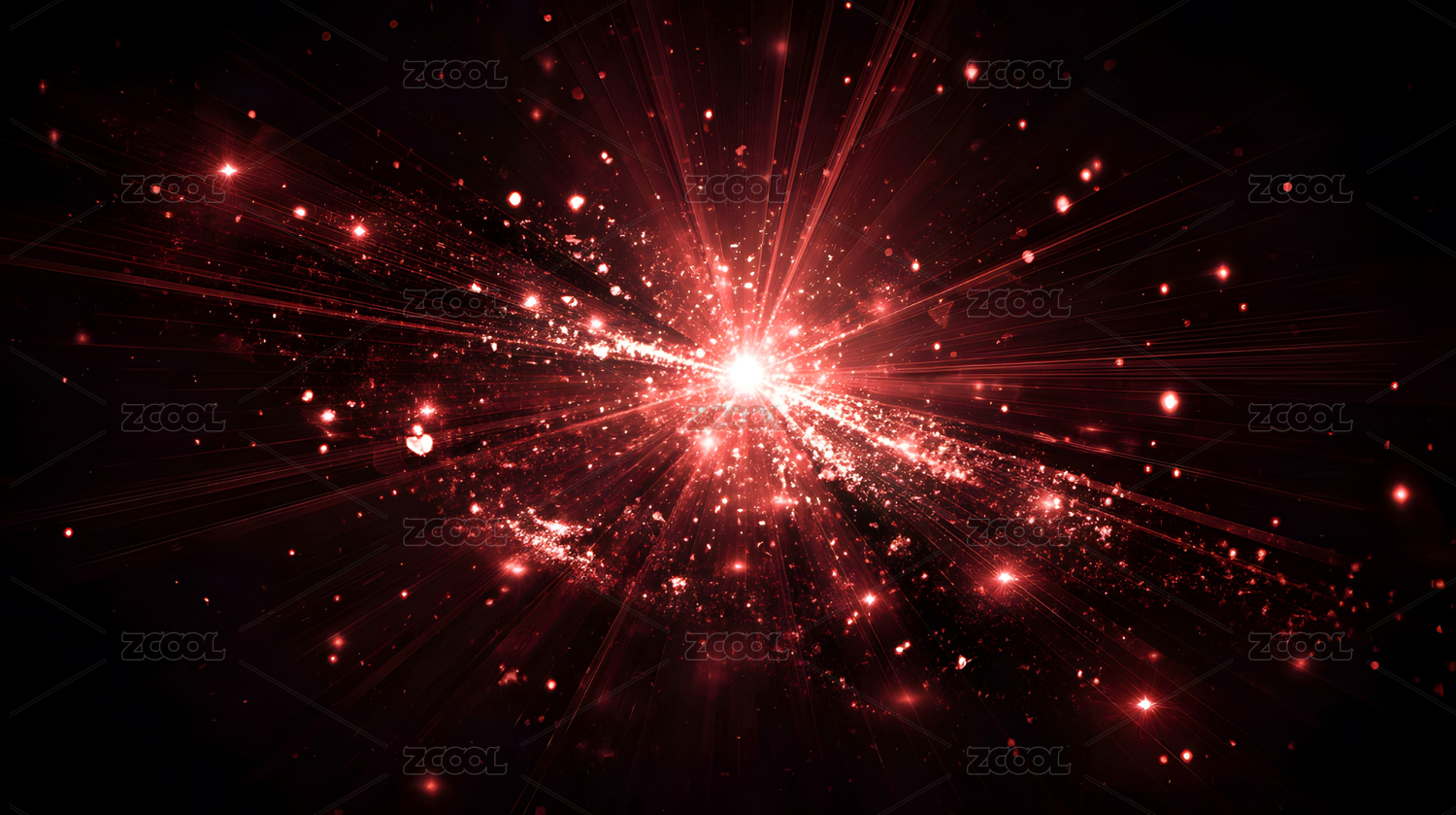 红色喷射光晕,动感的发射状分形艺术插画