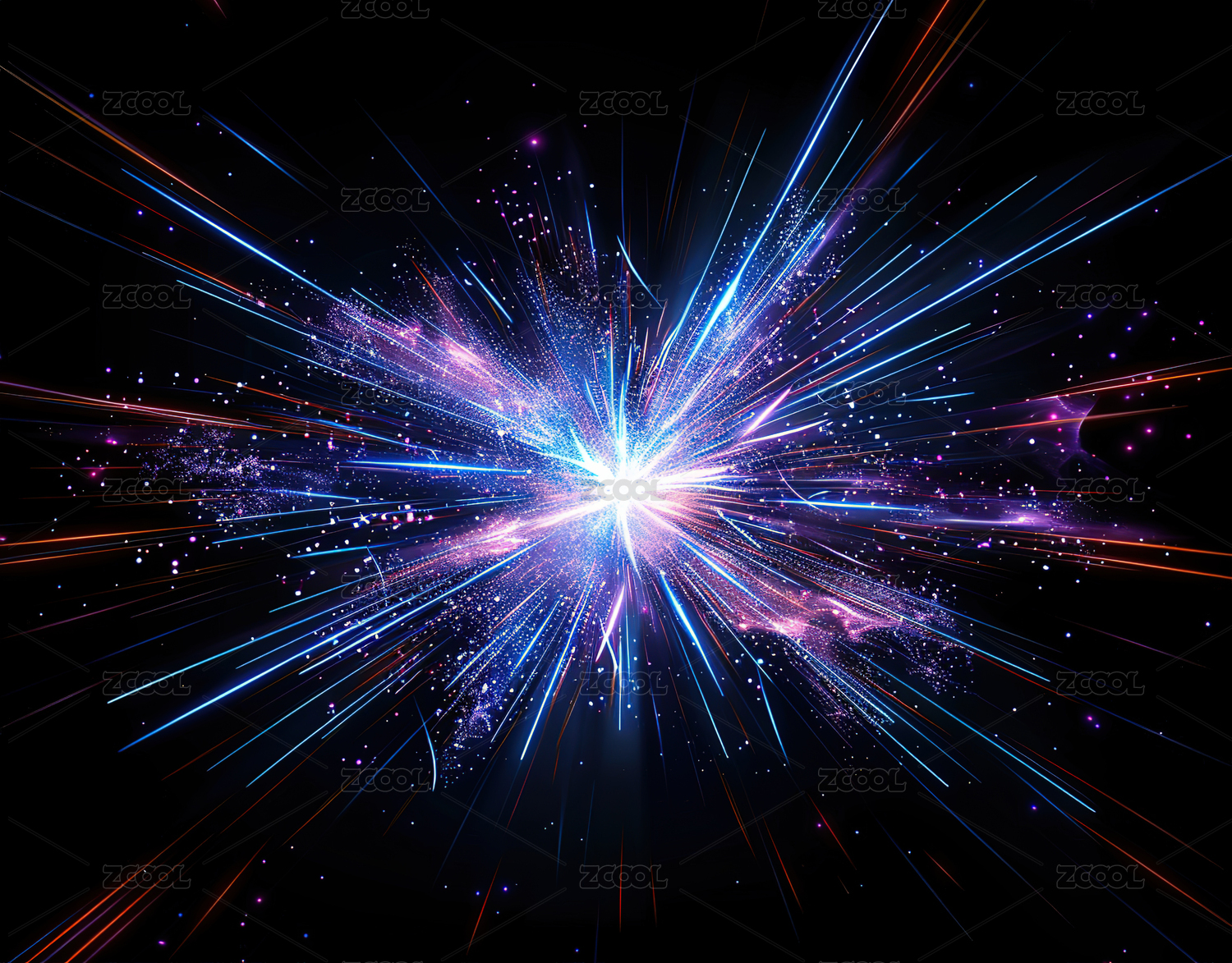 深色背景上蓝色光爆特效构成图案