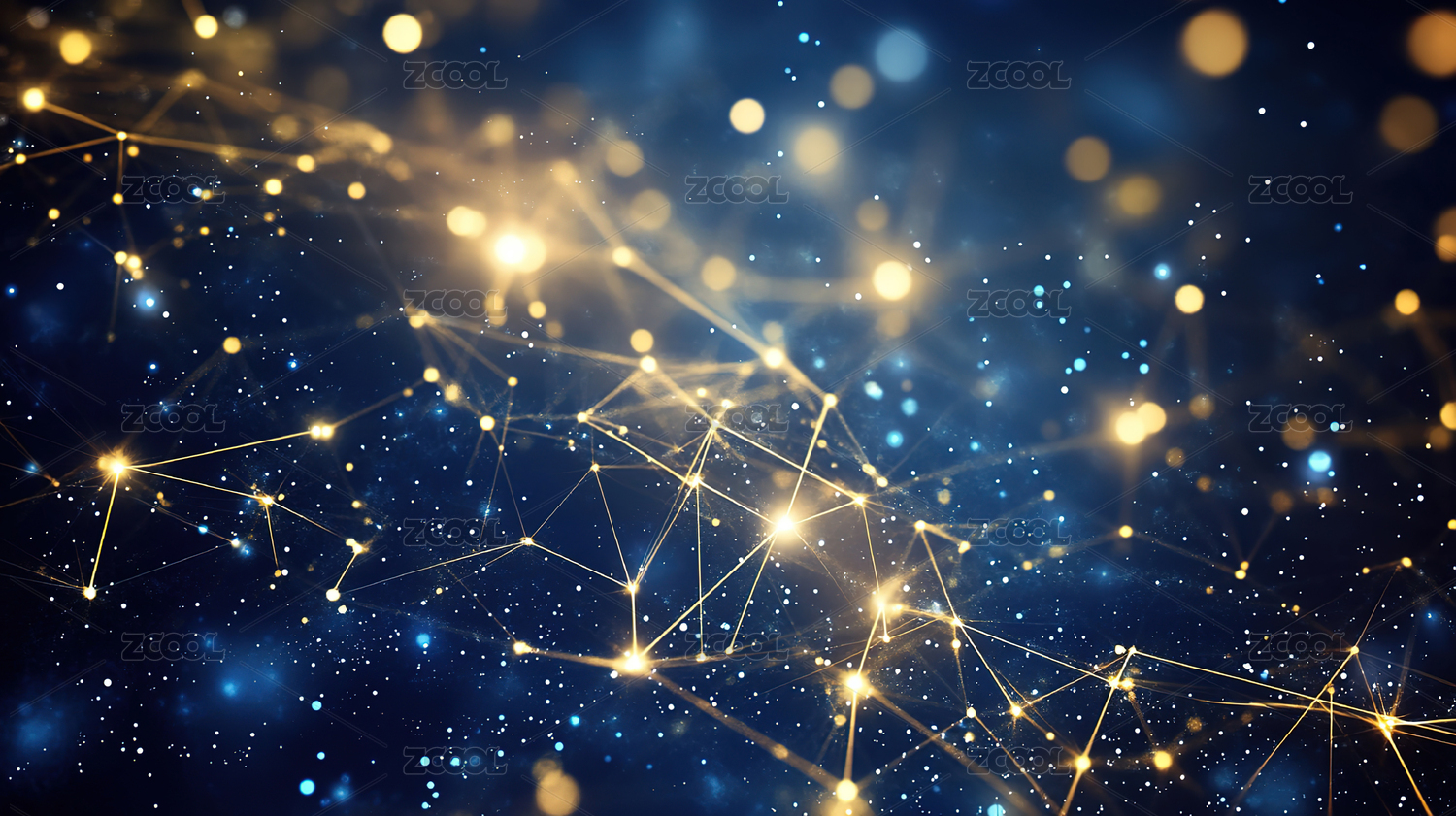 蓝色光点连接网络抽象