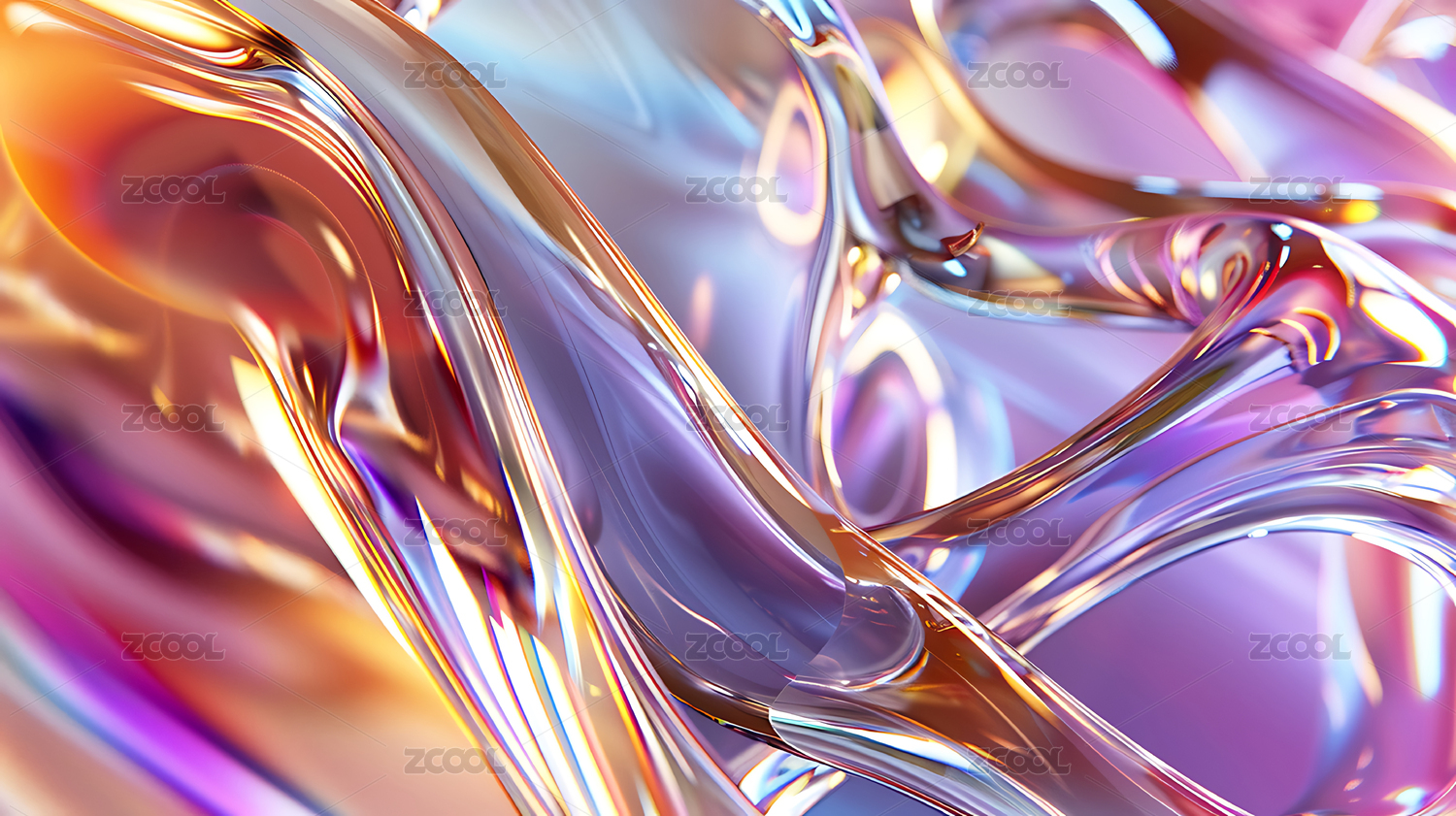3D流体玻璃质感液体金属的抽象背景