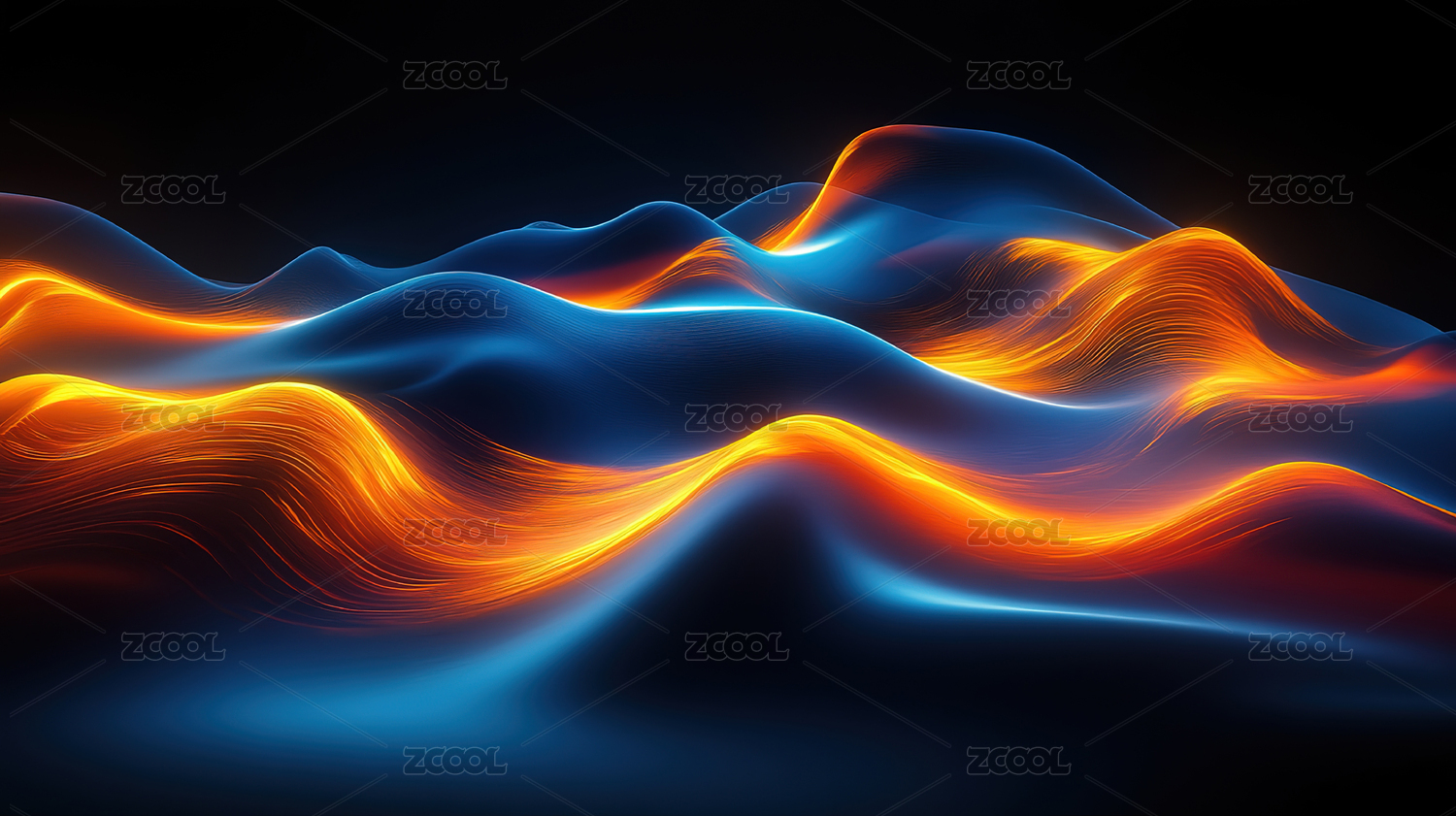 炫彩未来科技感3D蓝橙光流抽象风格背景