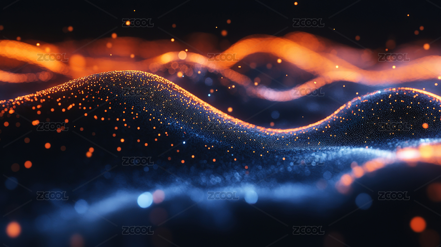 金色波浪粒子蓝色背景