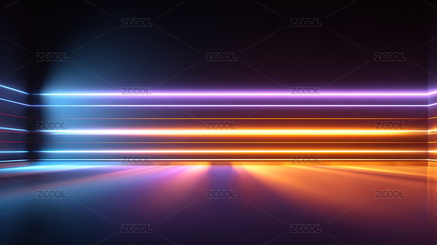 霓虹光束垂落的抽象空间
