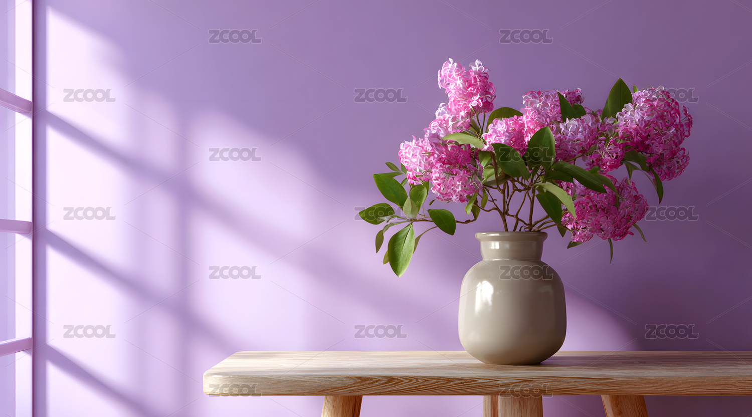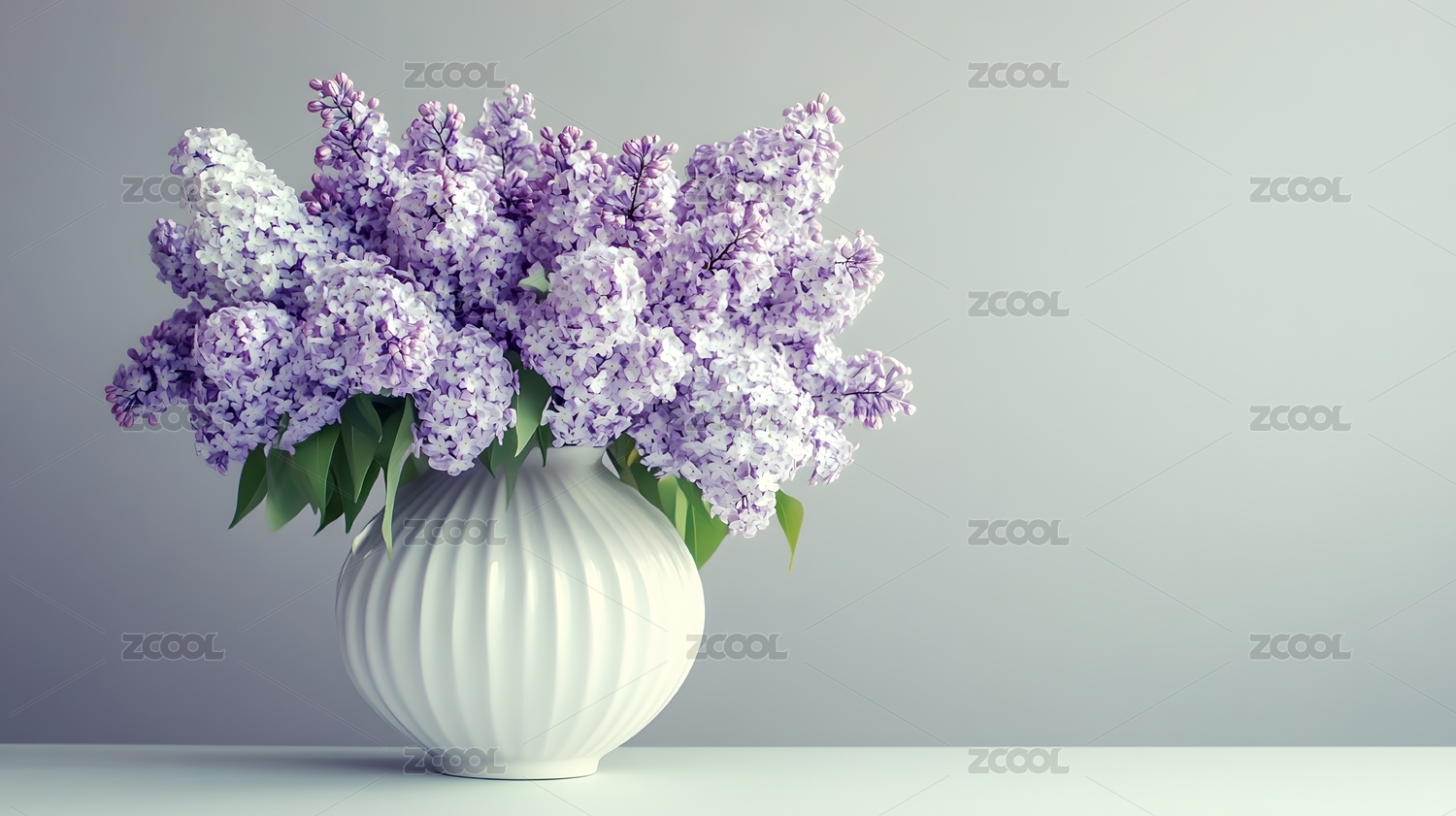 白色花瓶中盛放的紫色丁香花