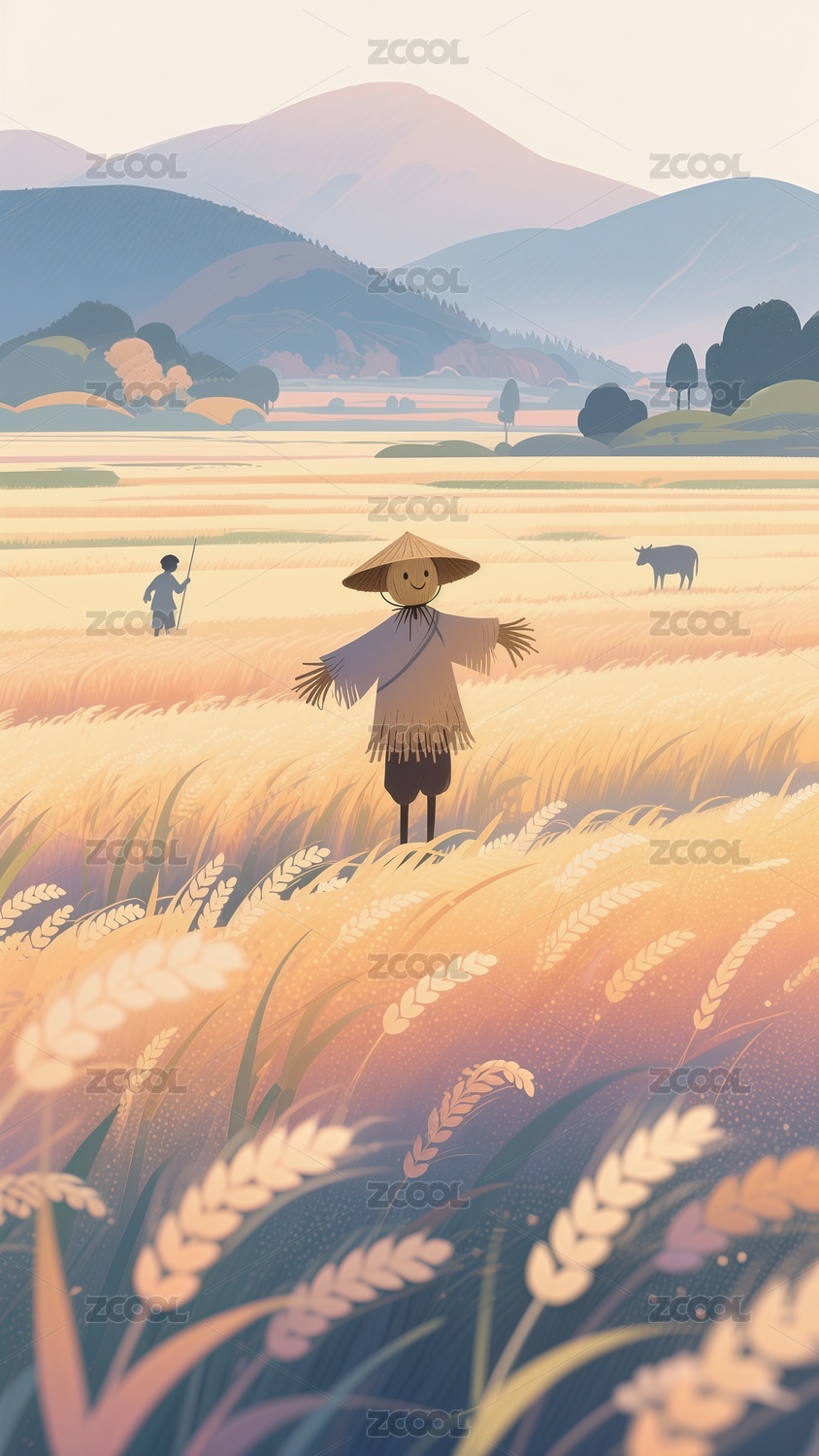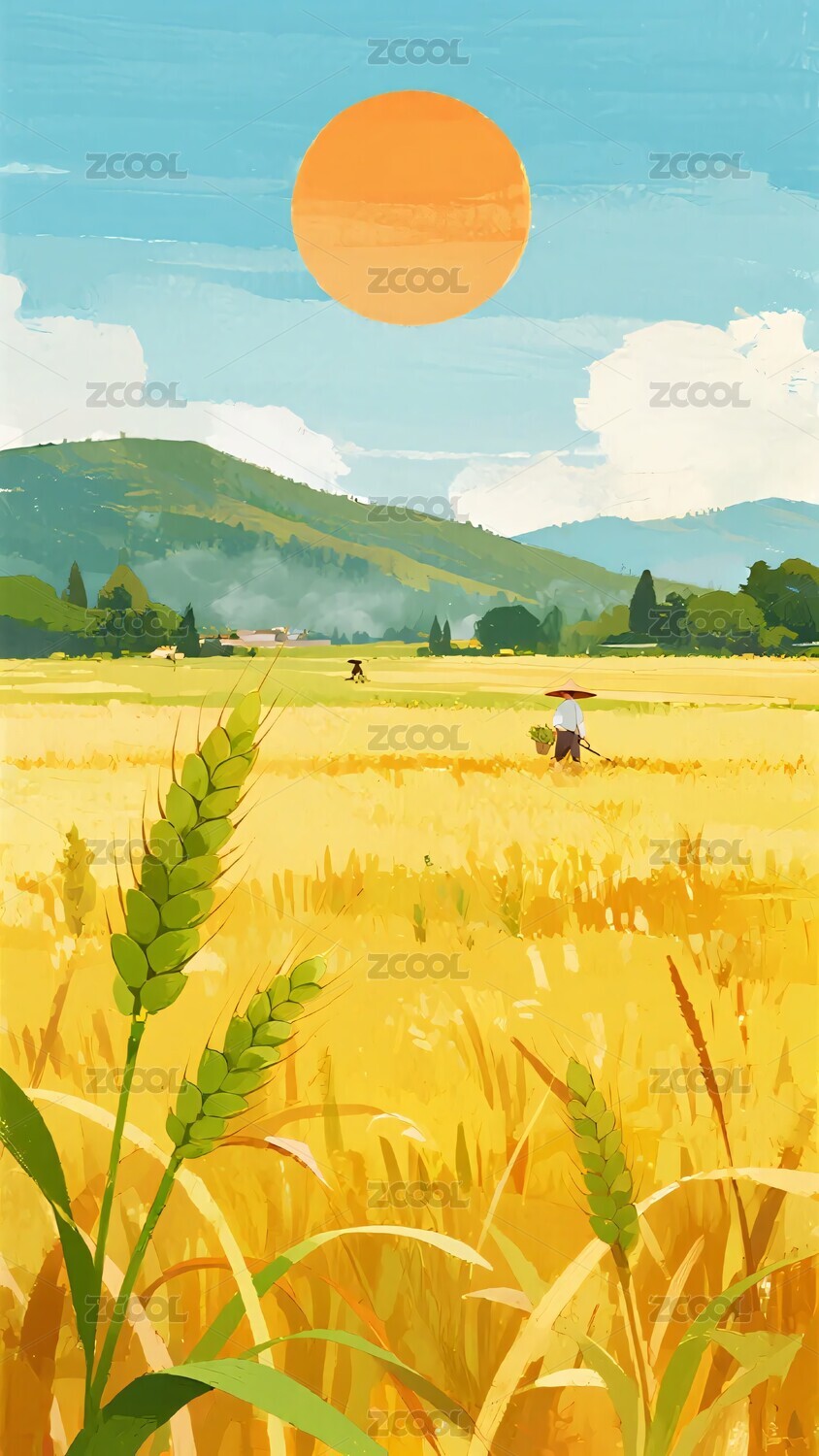 金色稻田里的丰收景象 田园牧歌般的乡村风