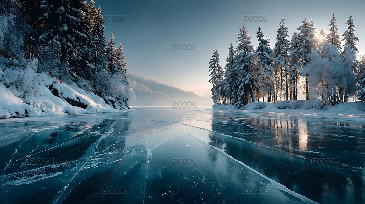 冰封湖面的冬日清晨
