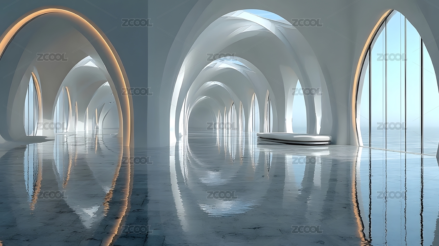 线条,现代,空间,设计,白色,灯光,建筑,拱形,简约,室内