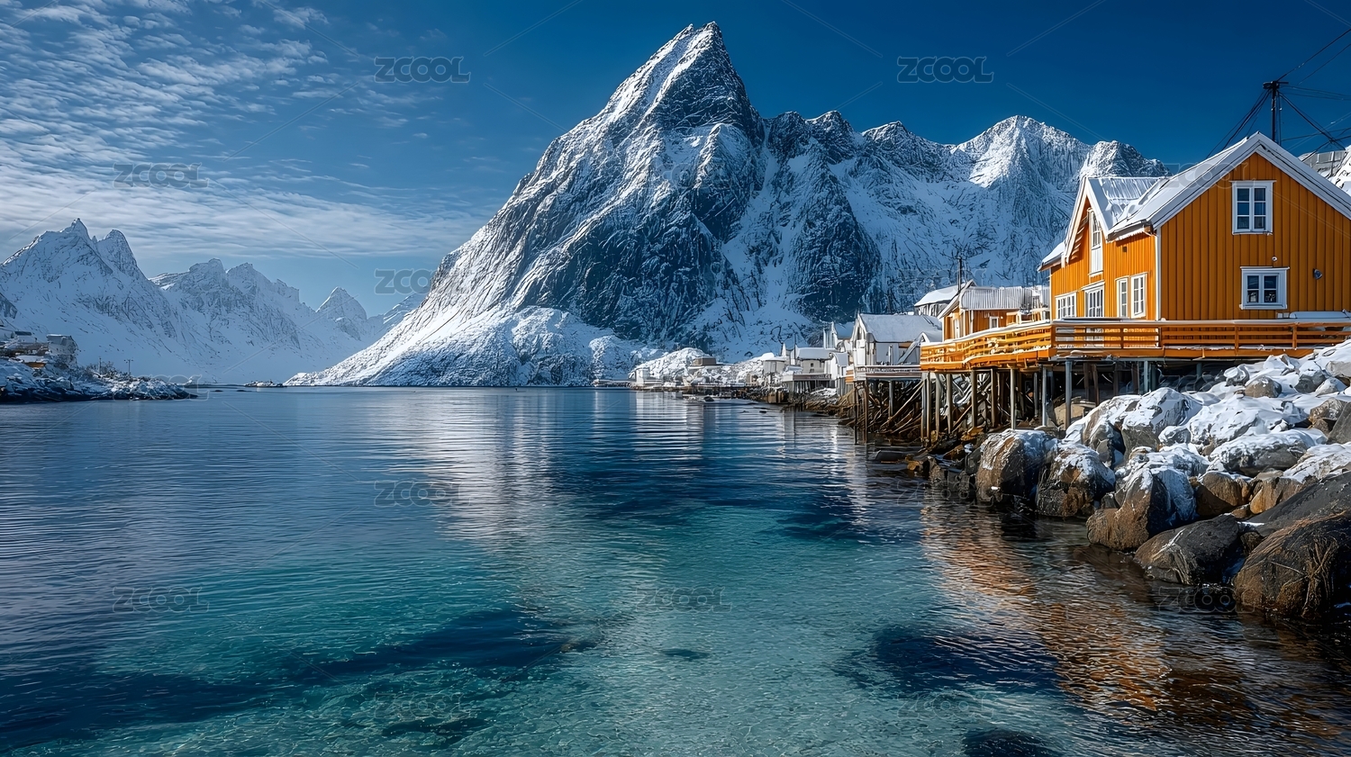 建筑,红色,寒冷,自然,雪地,风景,倒影,房屋,宁静,冰面