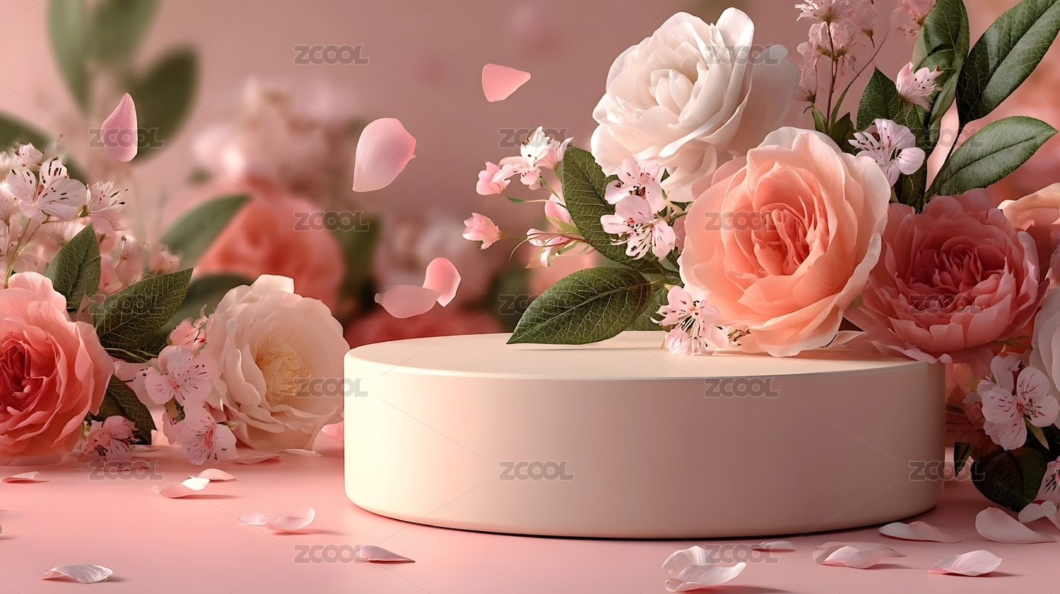 空间,设计,背景,简约,装饰,柔和,色彩,自然,粉色,绿叶