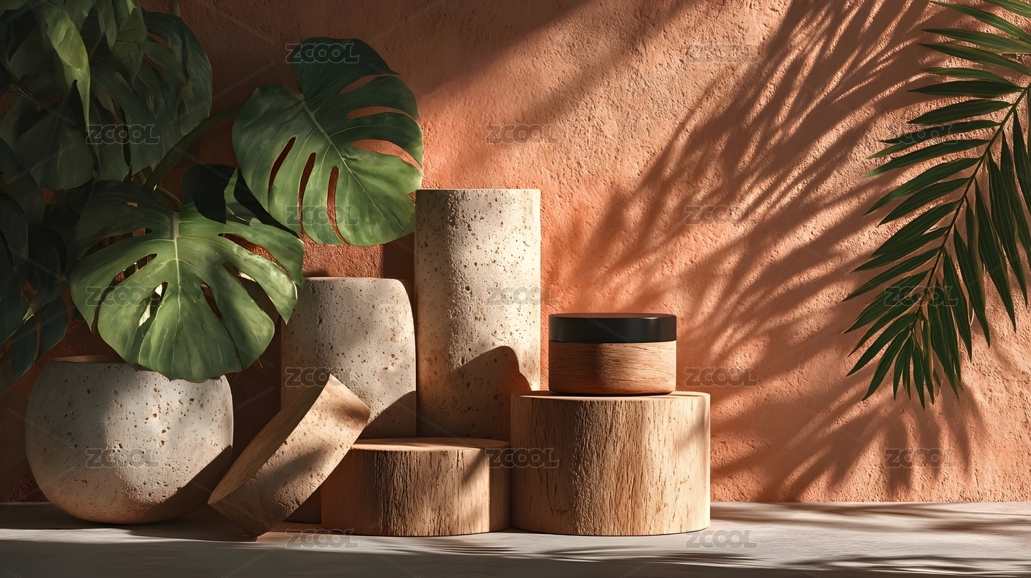 植物,自然,绿叶,几何,绿色,圆柱,简约,阳光,阴影,背景