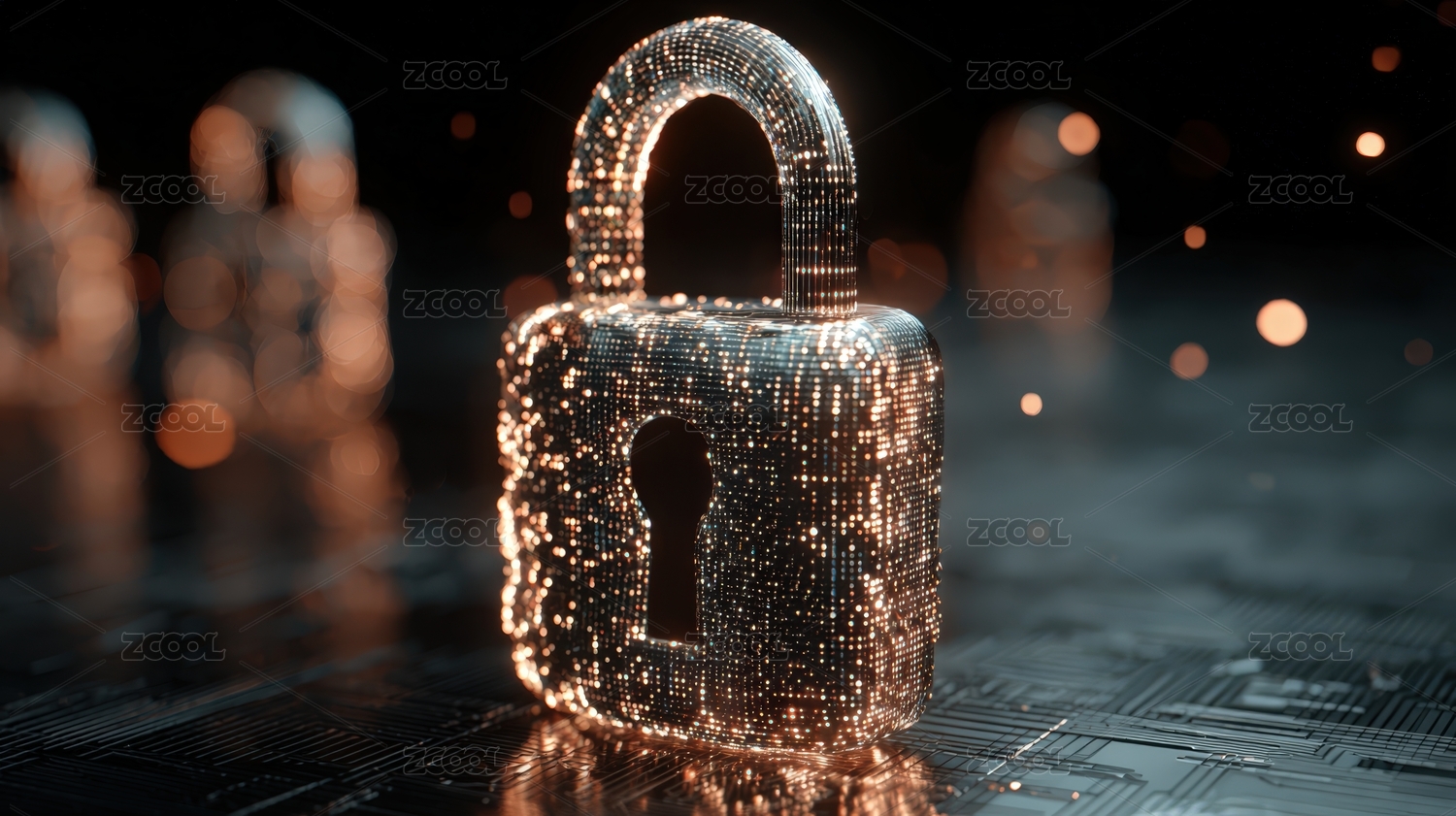 数字粒子构成的挂锁