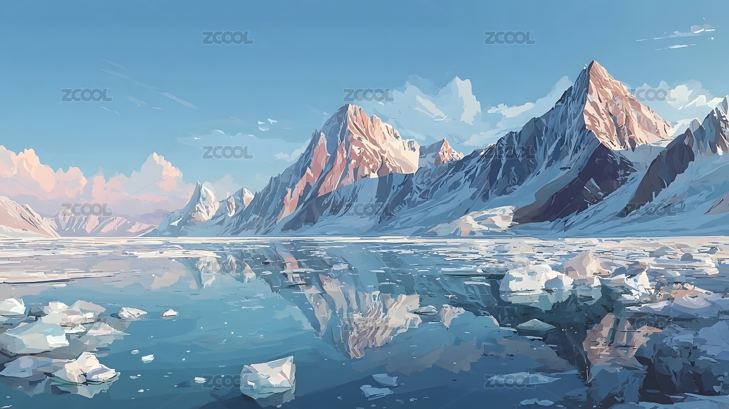 水域,水面,山谷,蓝色,山脉,天空,云朵,山峦,雪地,白色
