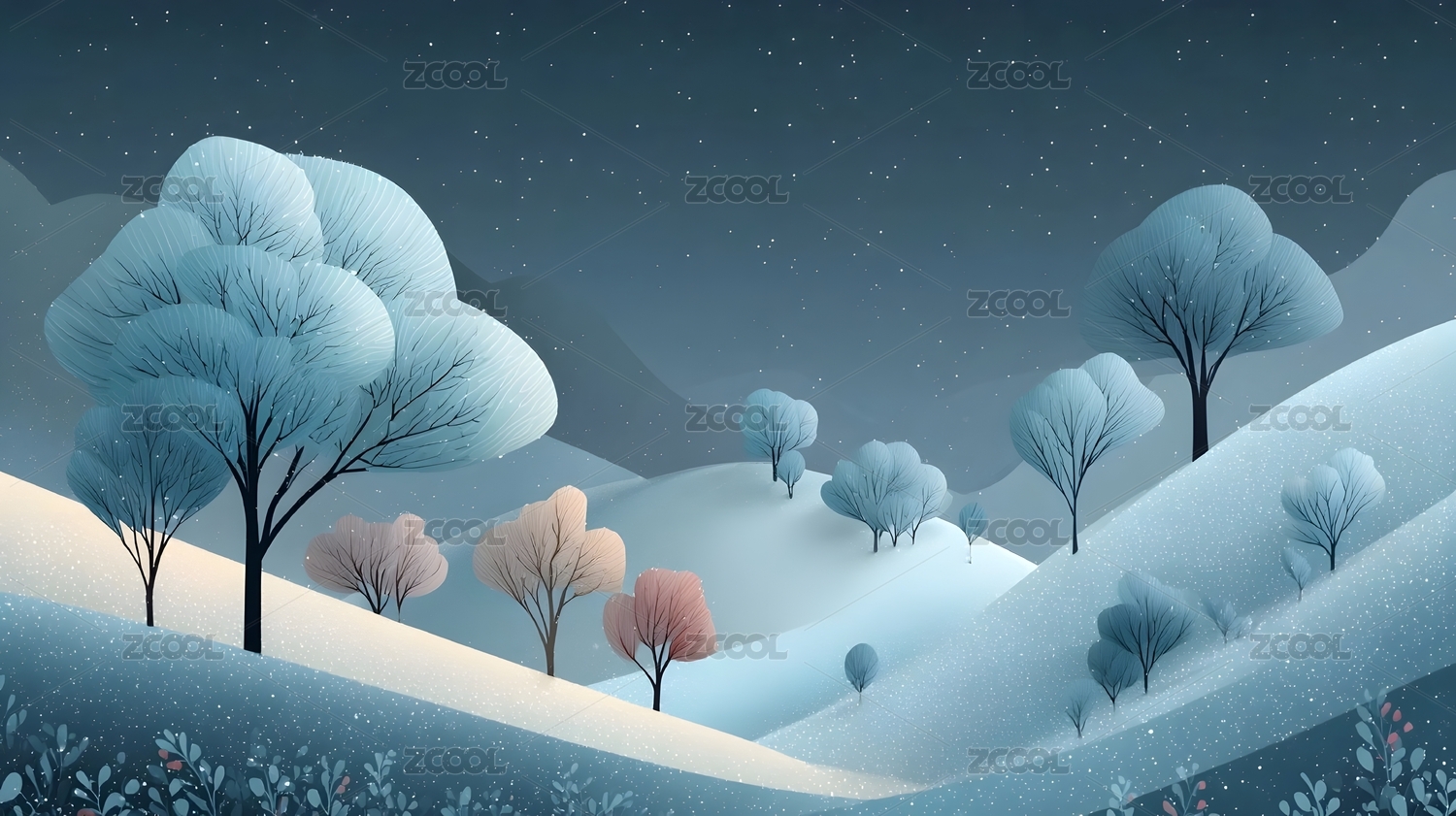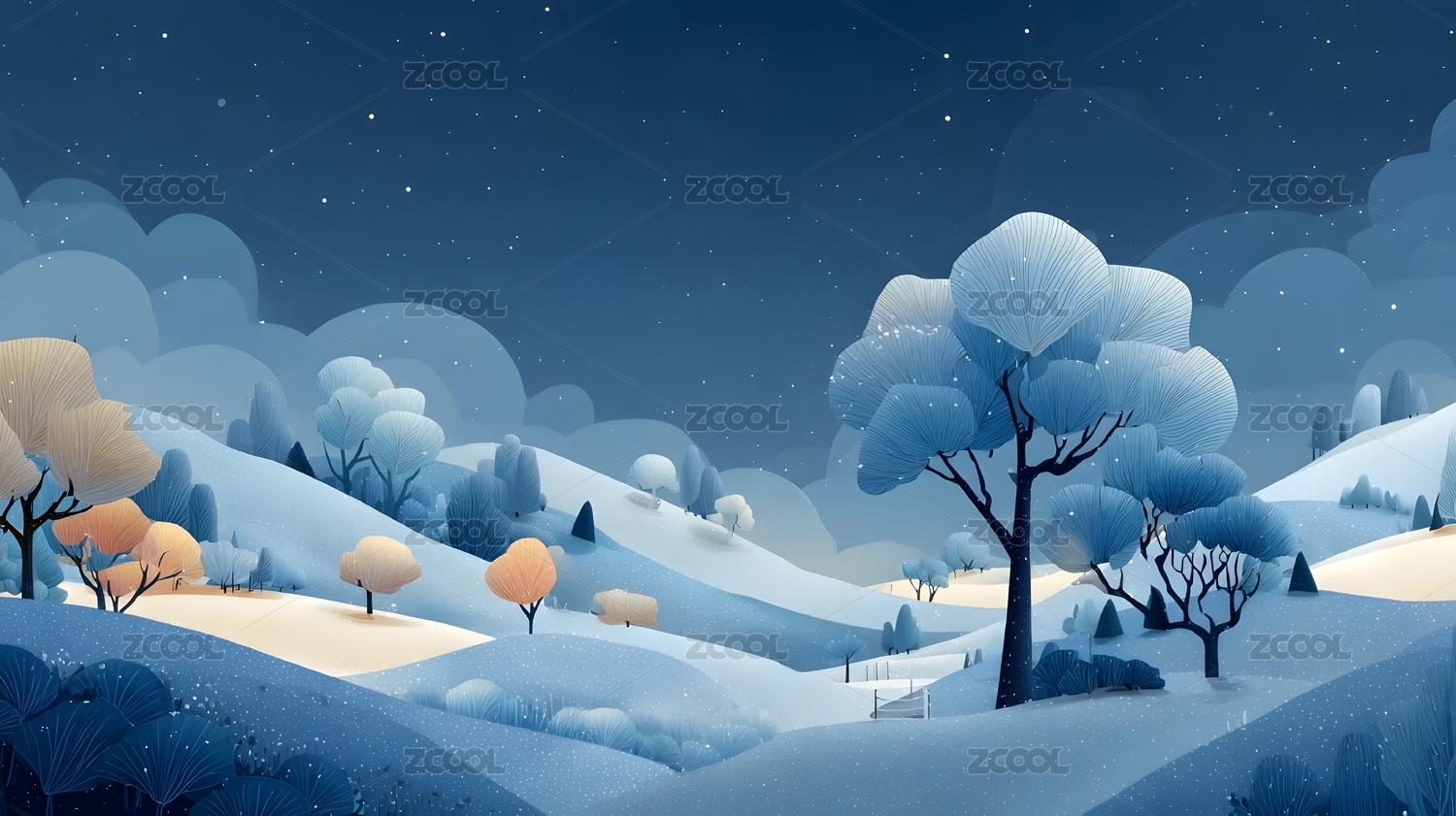 立冬节气冬天森林大雪户外旅行节日场景插画