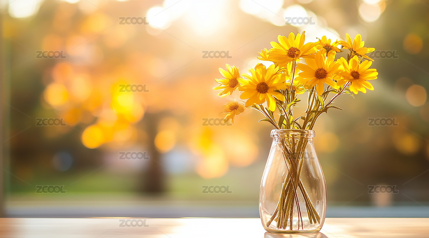 雏菊花束窗台