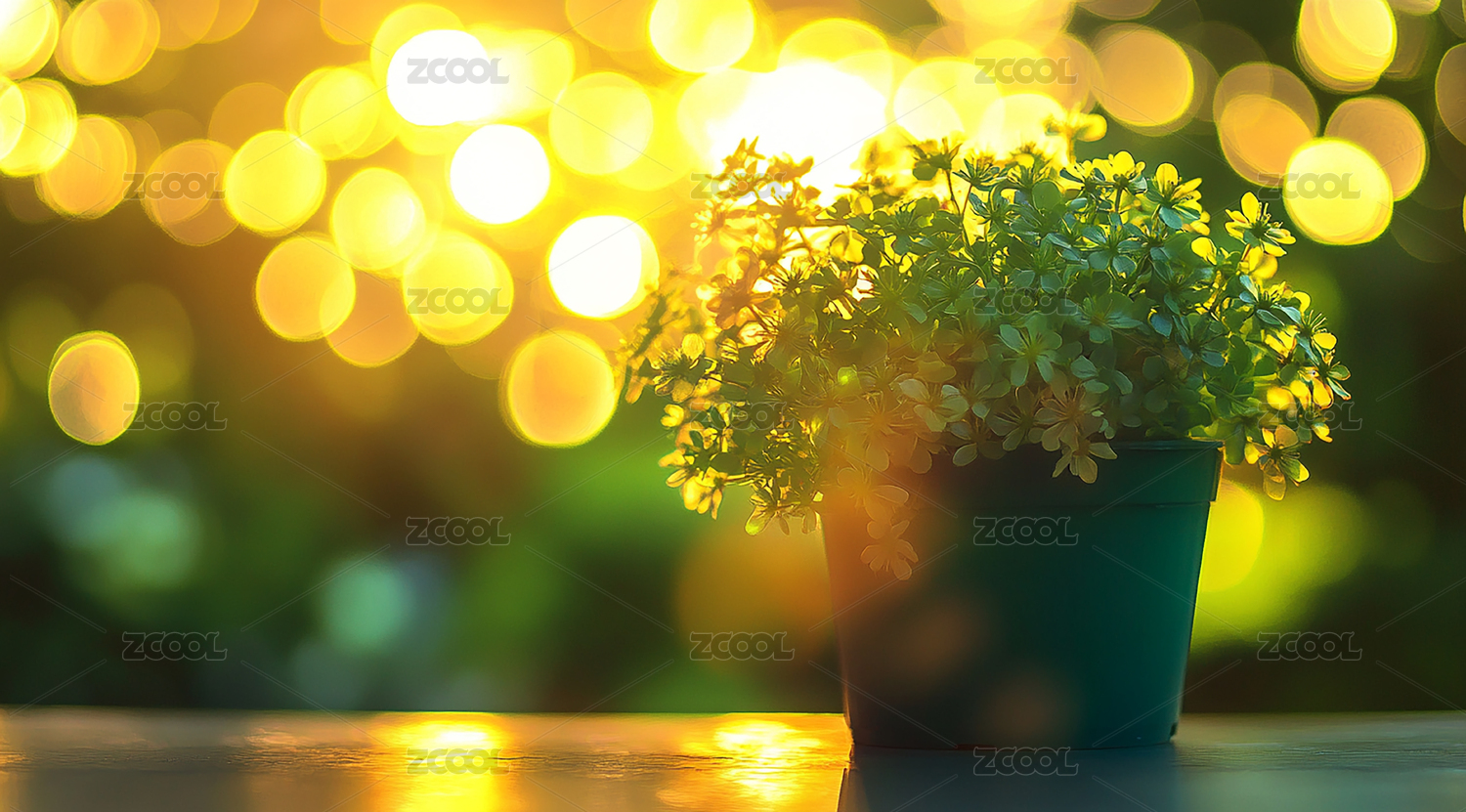唯美的光斑背景上的小型植物盆栽