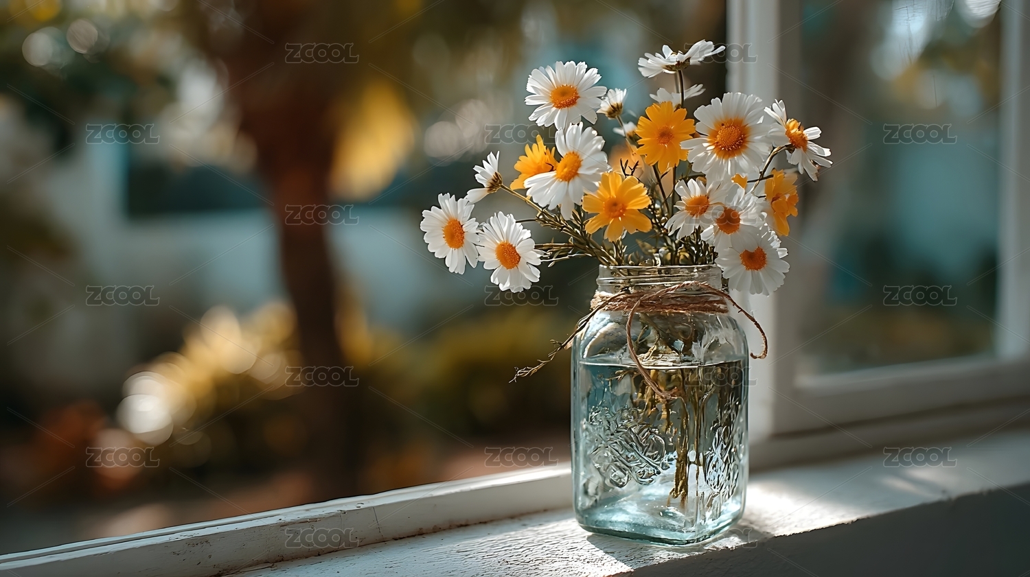 雏菊花束窗台阳光