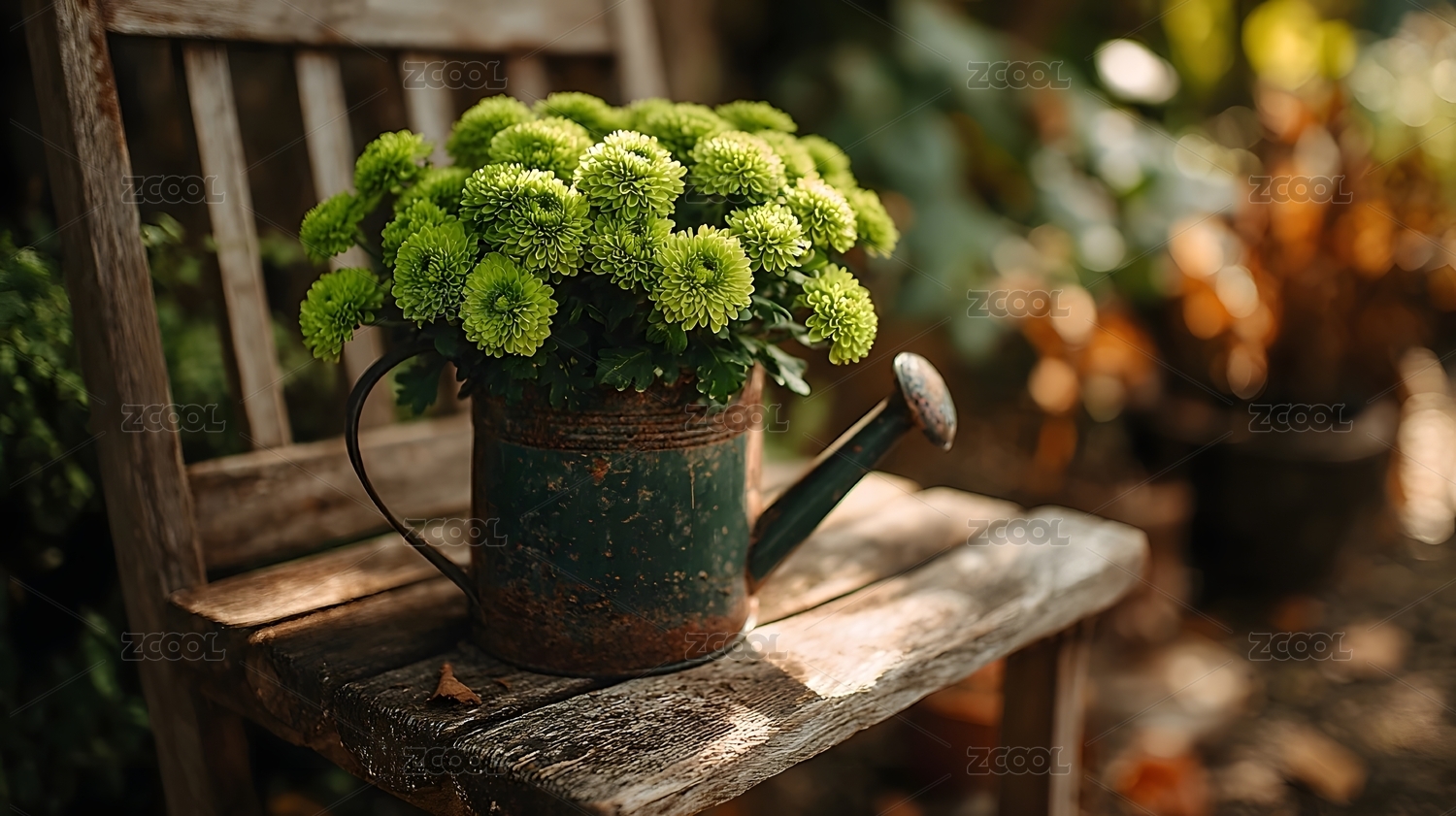 绿菊与旧浇水壶