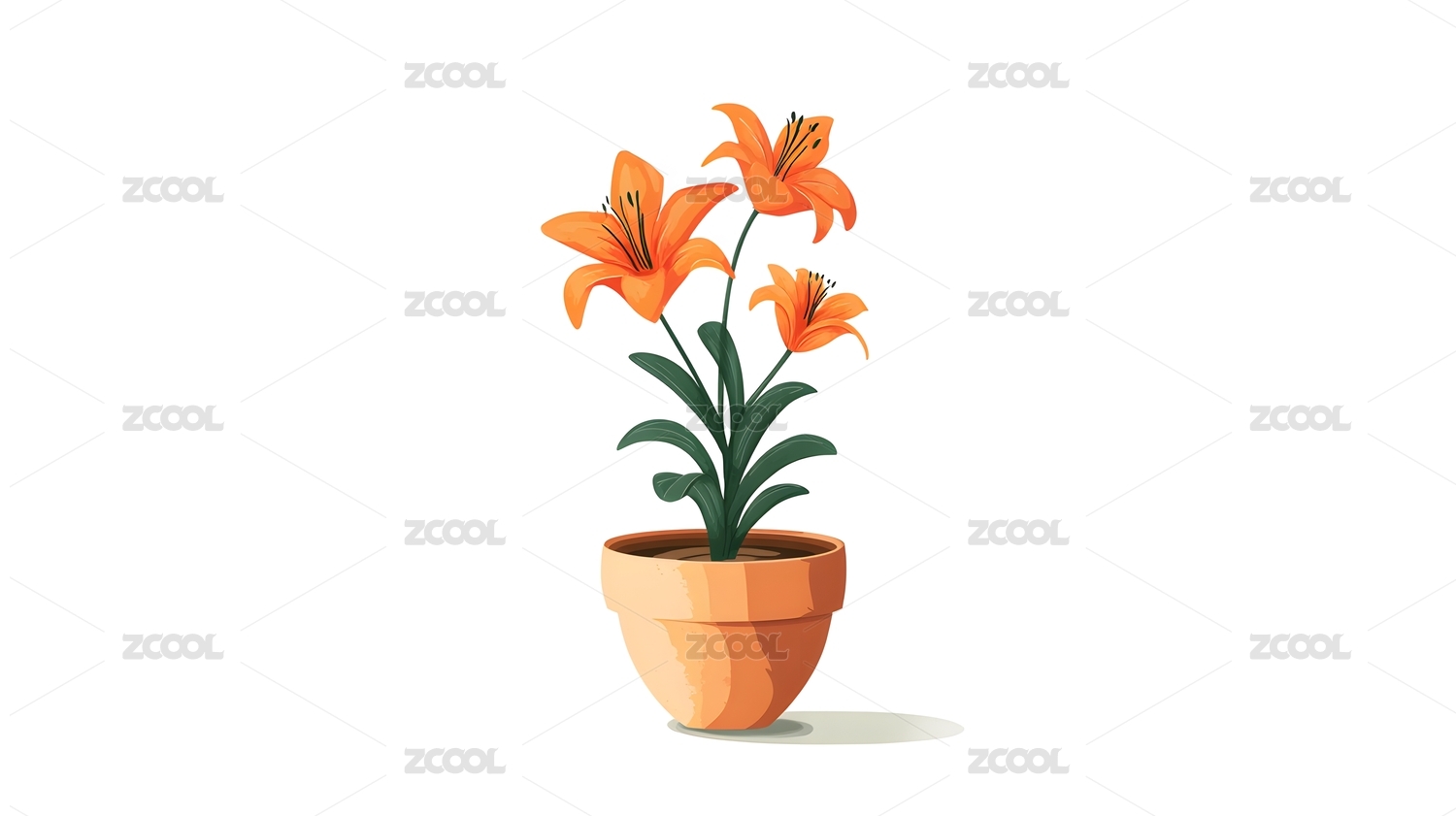 橙色百合盆栽简约插画