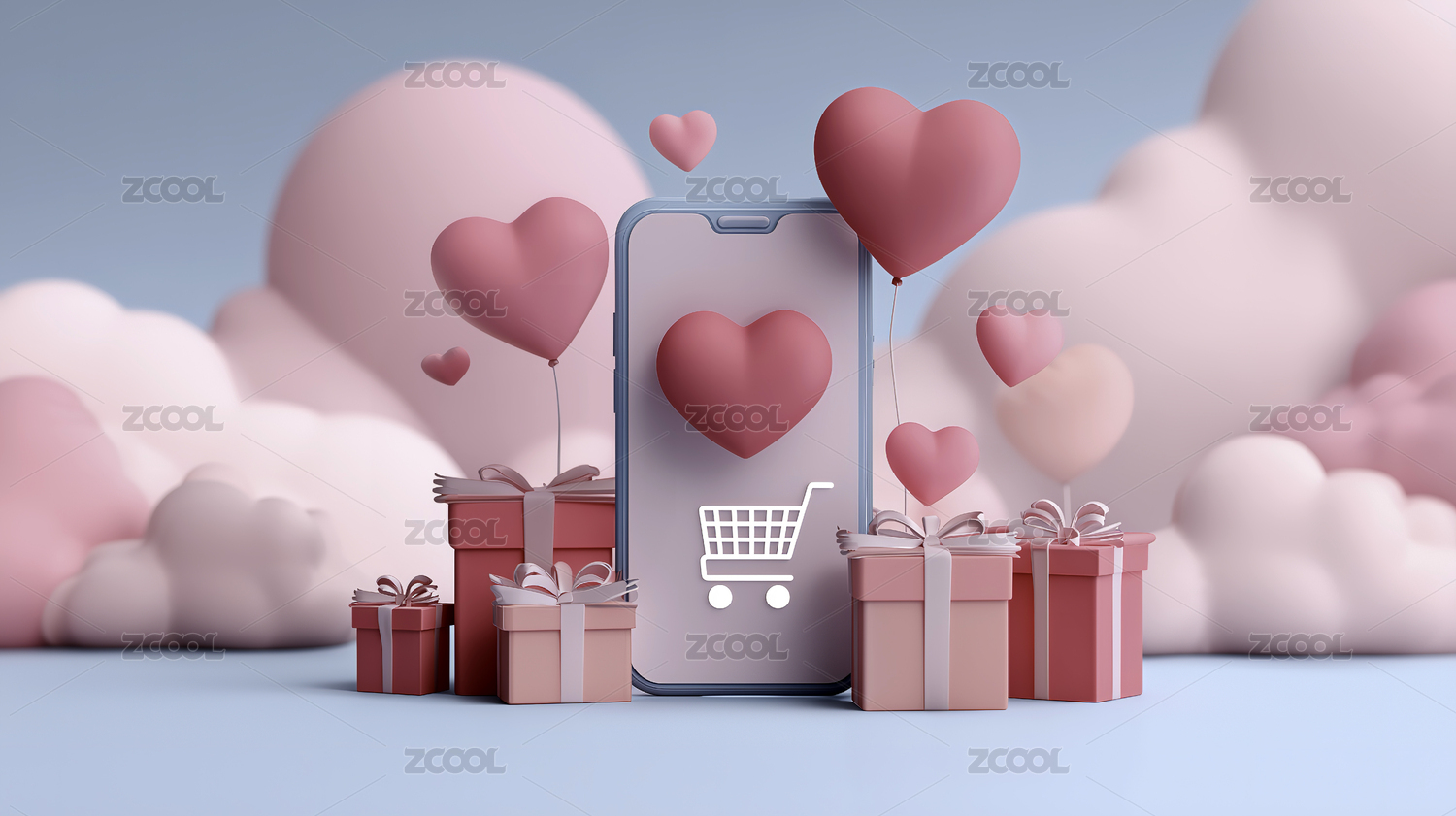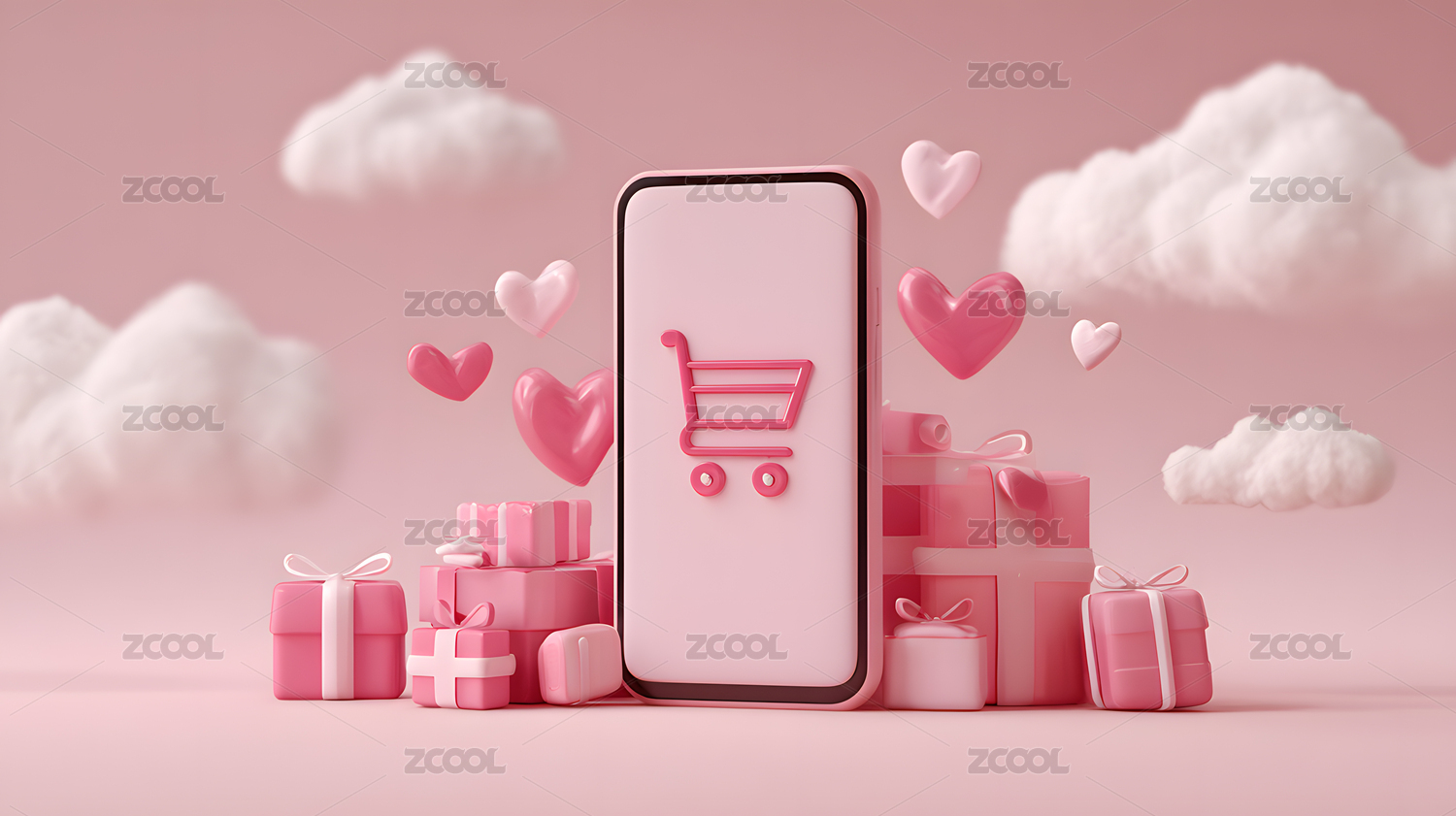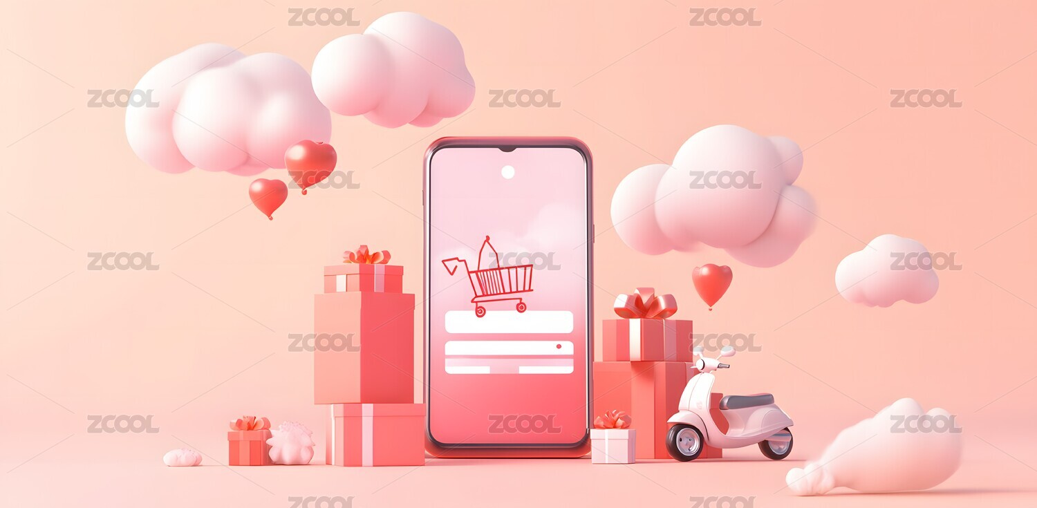 粉色手机购物浪漫场景