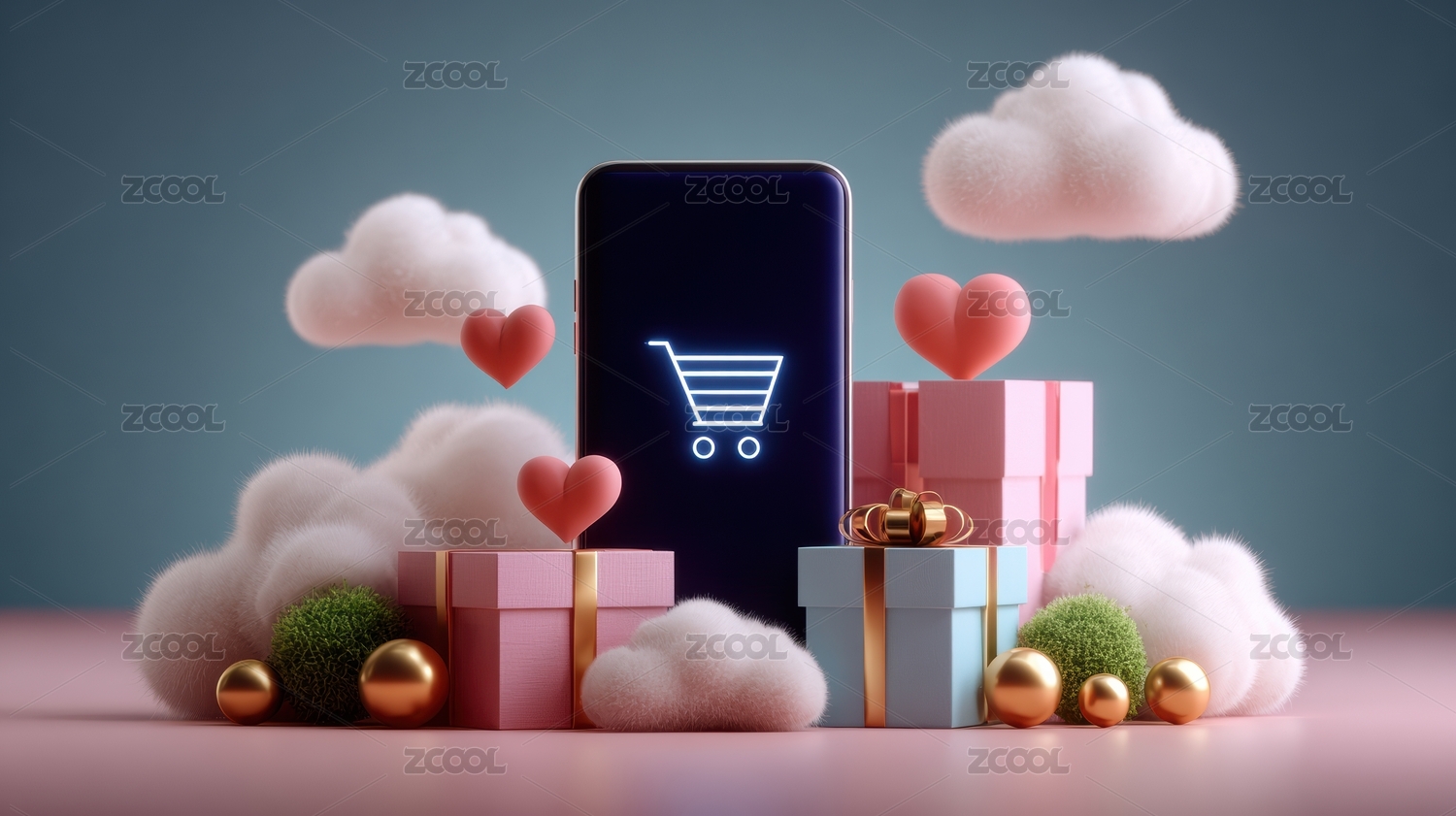 电商购物主题3D渲染风格图片