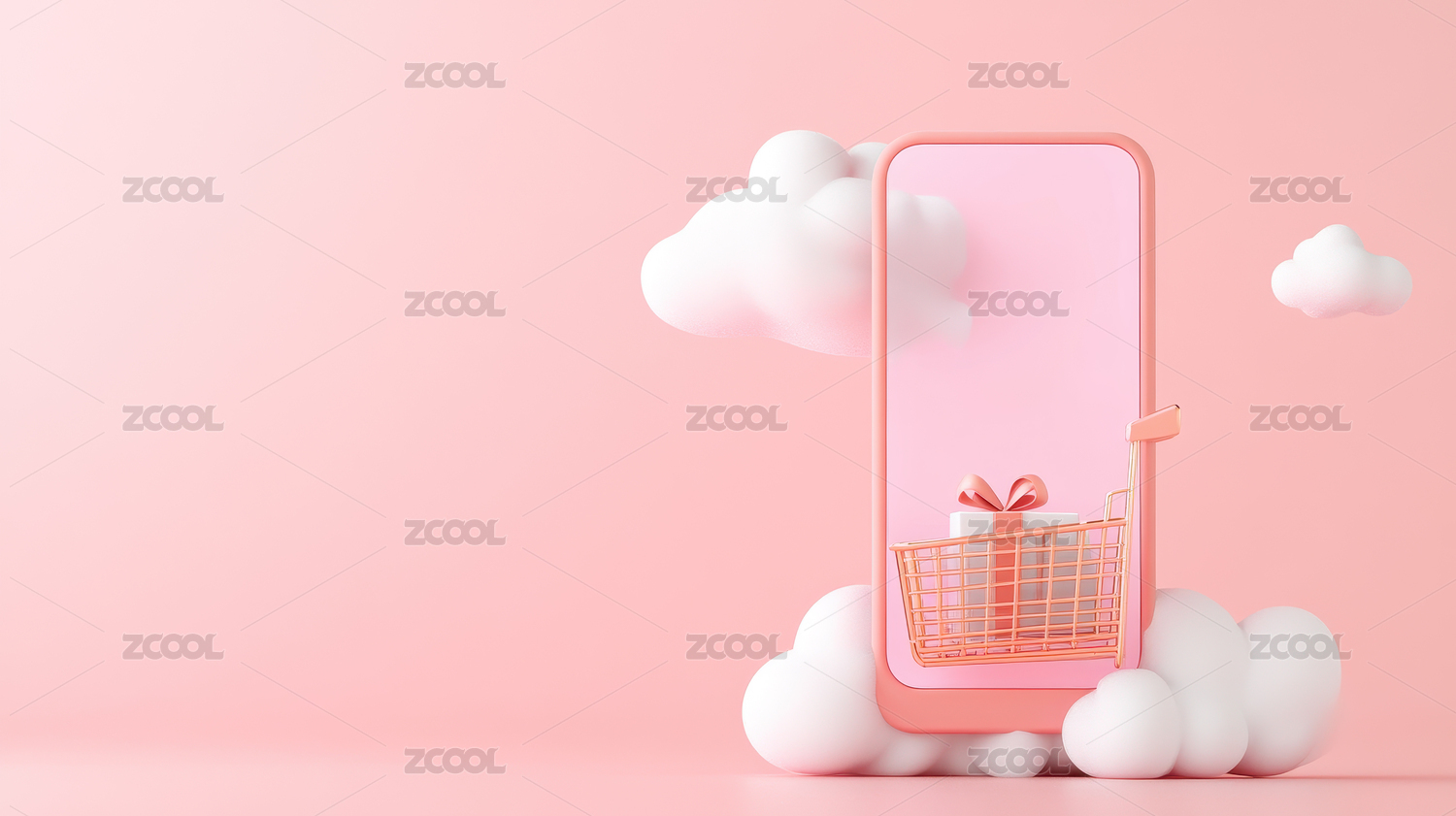 粉色手机购物车