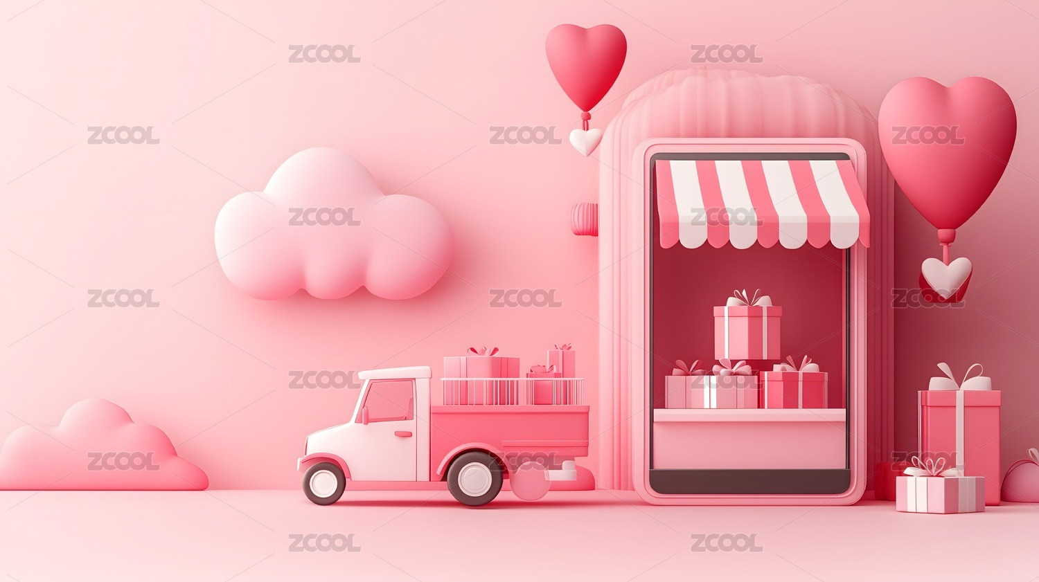 可爱,质感,粉色,梦幻,卡通,立体,3D,节日,背景,壁纸