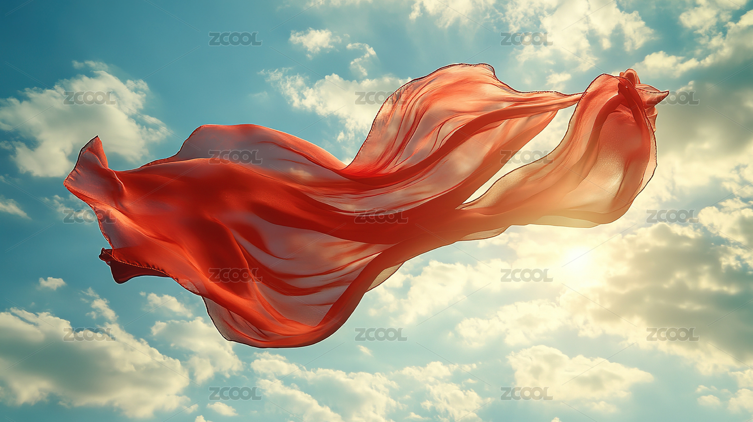 天空中红绸丝绸背景