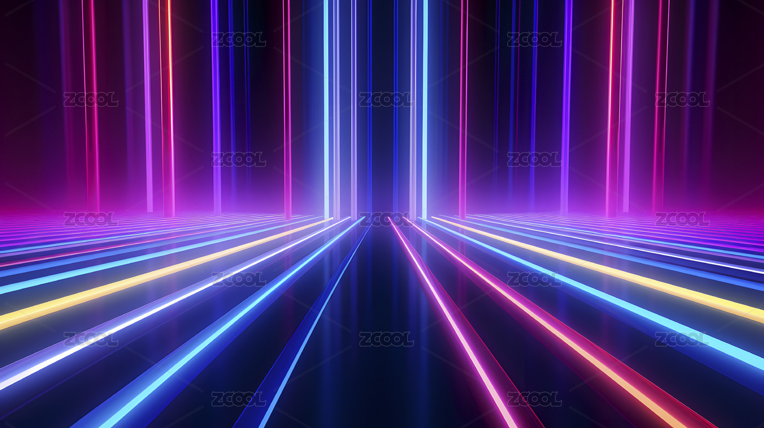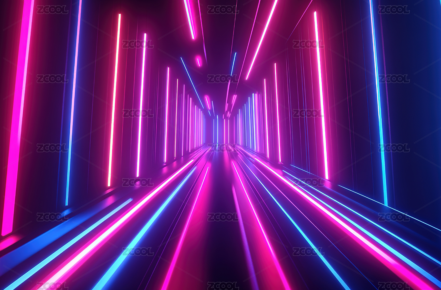 抽象霓虹灯发光几何线条3D渲染商务背景