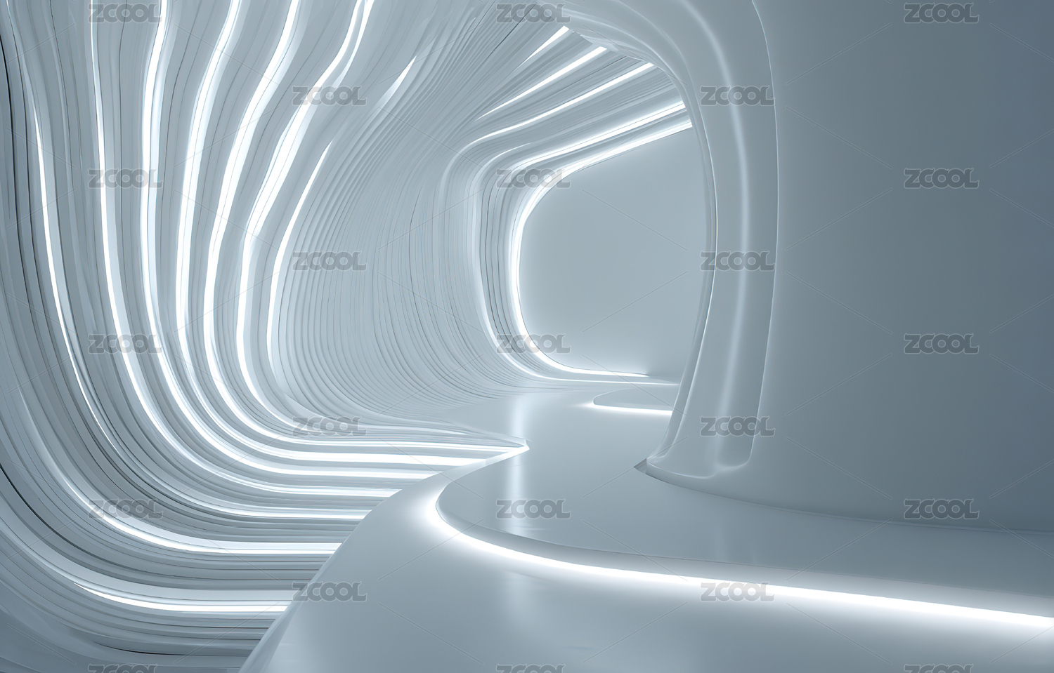 未来感白色曲线隧道