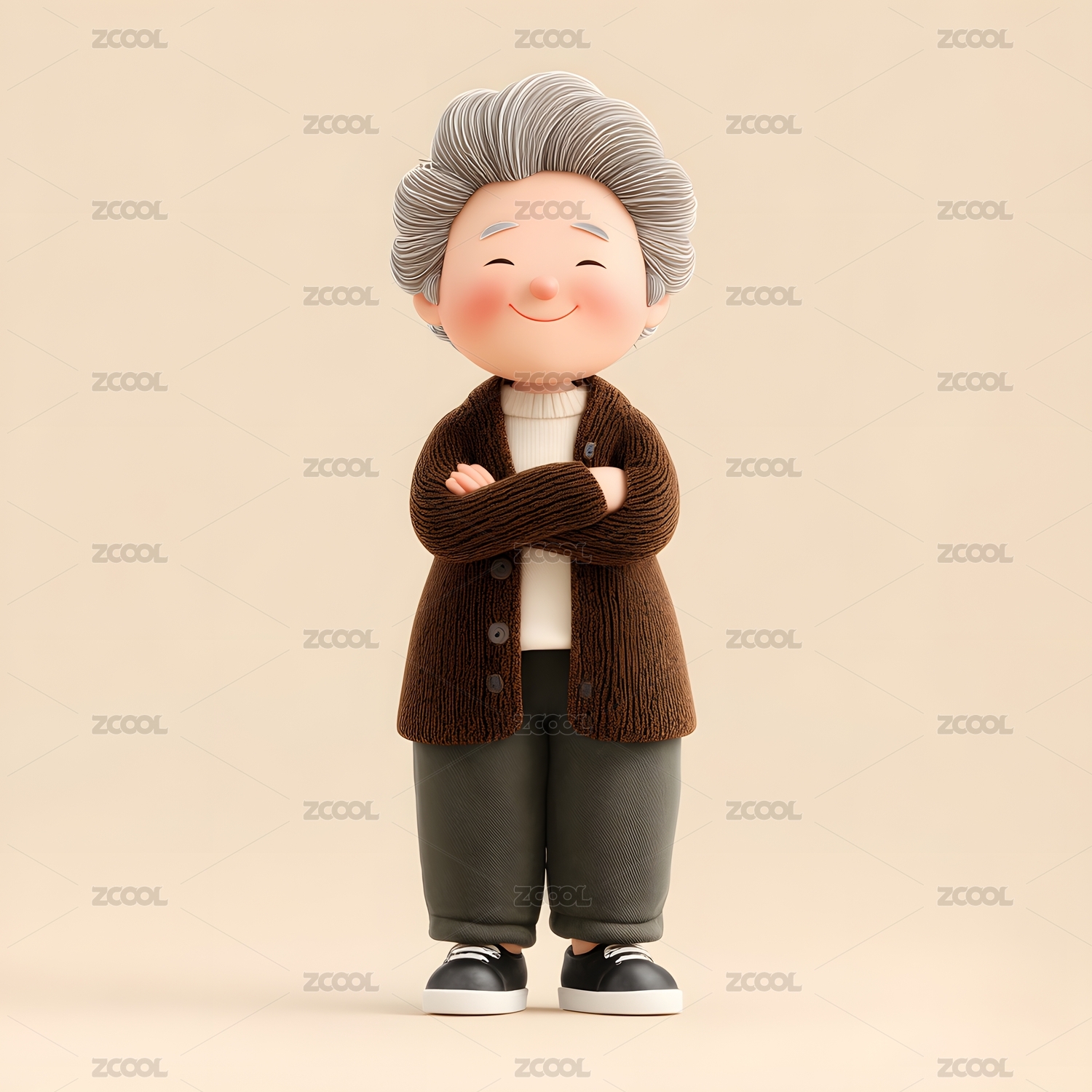 鞋子,双臂,站姿,短发,毛衣,微笑,背景,交叉,长裤,米色
